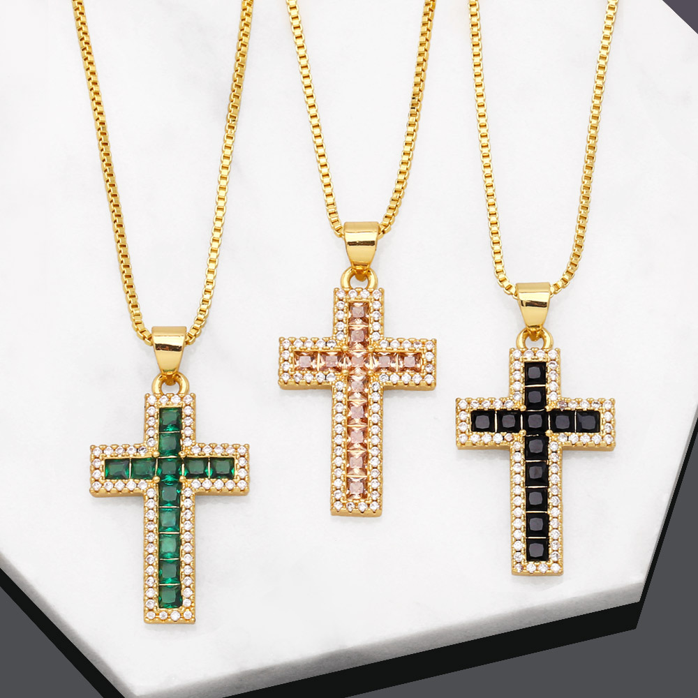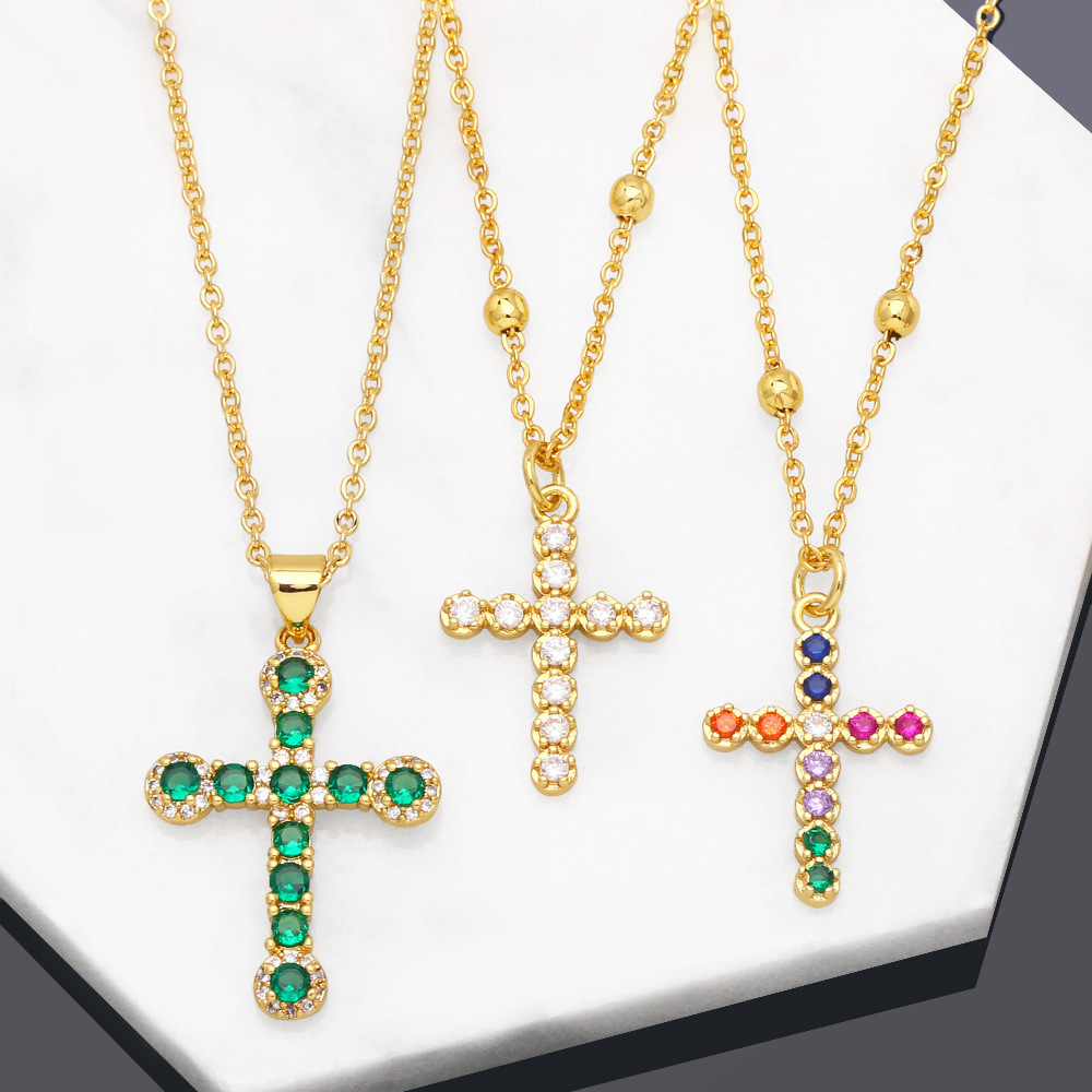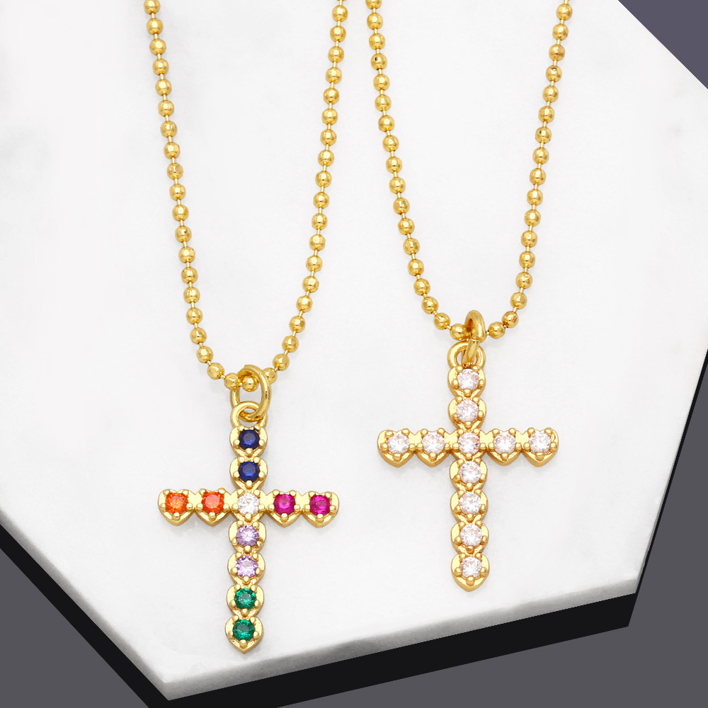 قلادة على شكل صليب هندسي مرصعة بالزركون الملون بتصميم أوروبي وأمريكي أنيق للنساء NKB412