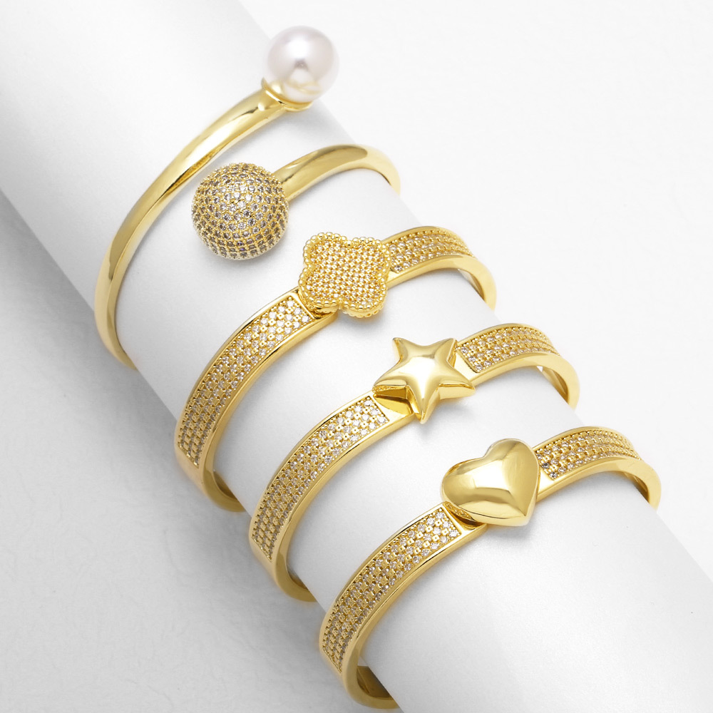 سوار بانجل bre83 مطلي بالذهب ومرصع بالكامل بالزركون على شكل نجمة خماسية