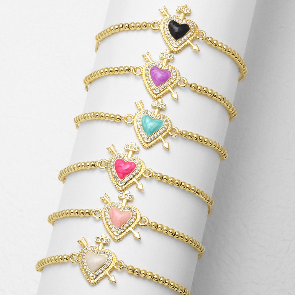 مجوهرات جديدة على شكل قلب حب، مطلية بالنحاس ومرصعة بالزركون، مصنوعة من الذهب عيار 18 قيراطًا، سوار brf05