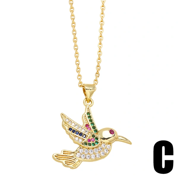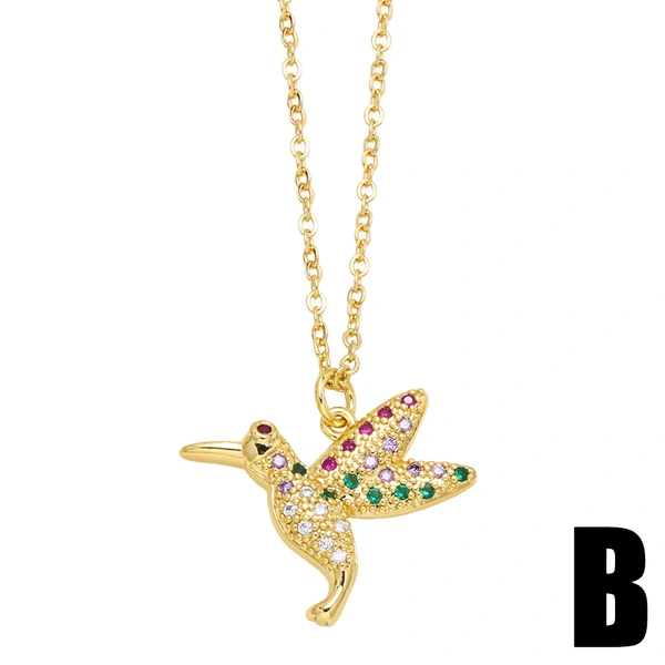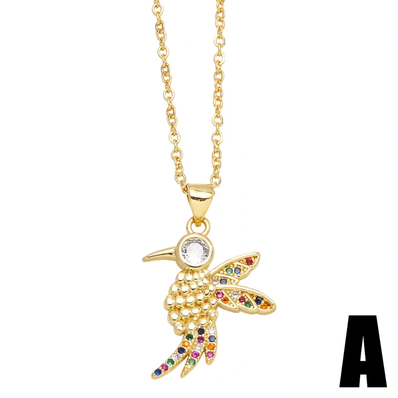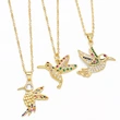 قلادة أزياء شخصية أوروبية وأمريكية من النحاس المرصع بالزركون الملون اللطيف على شكل طائر قلادة سلسلة الترقوة للنساء nkp42