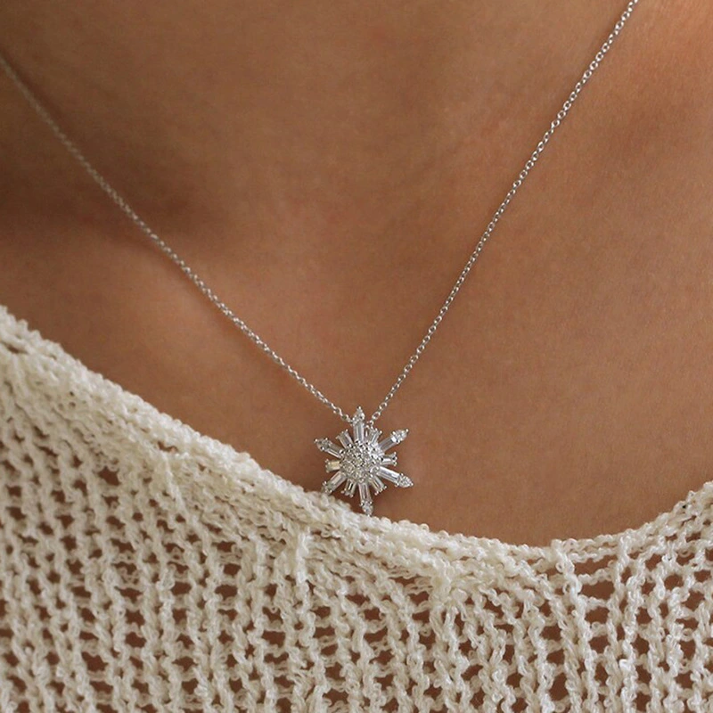قلادة أميرة لامعة جديدة، هدية رائعة لصديقة من المشاهير على الإنترنت، قلادة على شكل سلسلة رقاقات ثلج جليدية