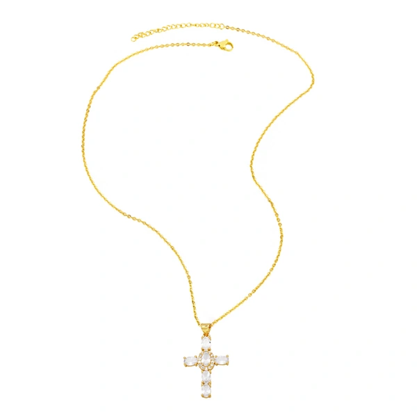 قلادة أوروبية وأمريكية رائجة البيع للنساء مع قلادة صليب الترقوة من الماس واللؤلؤ مجوهرات بسيطة على الموضة nkb727