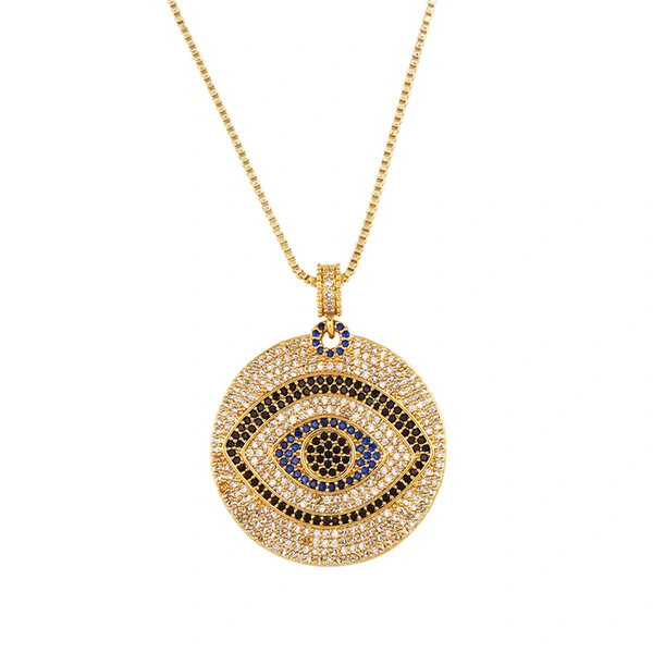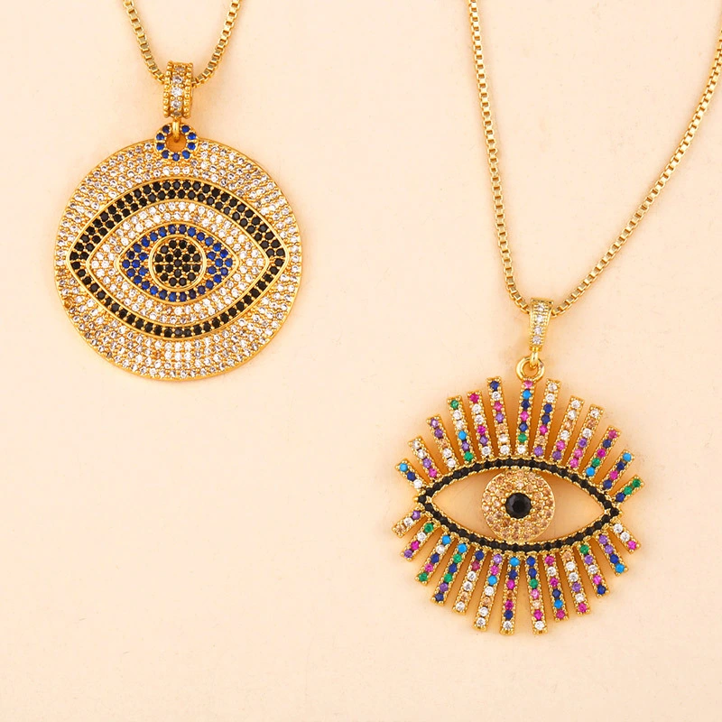قلادة إكسسوارات على الطراز الأوروبي والأمريكي مرصعة بالزركون على شكل عين الشيطان، قلادة شبكية للمشاهير، سلسلة قصيرة من الصوف nkp47