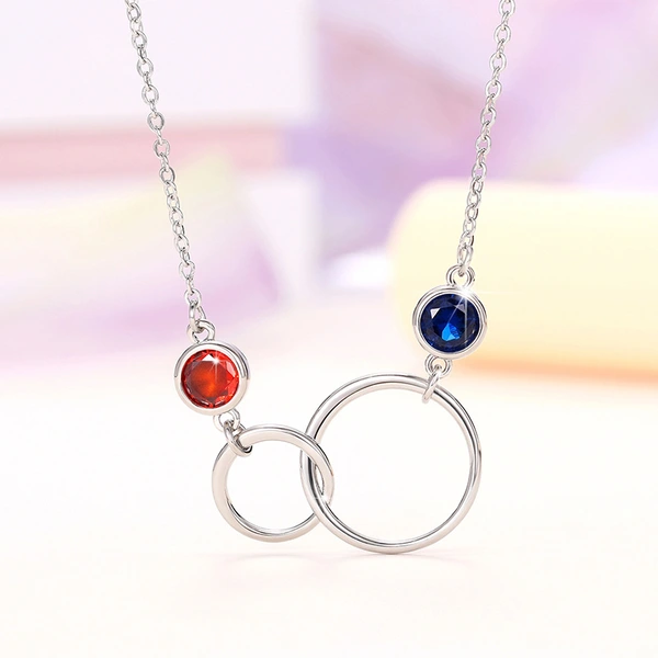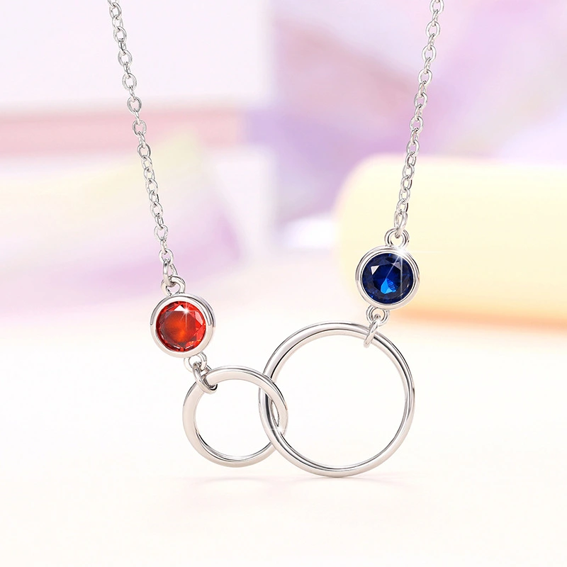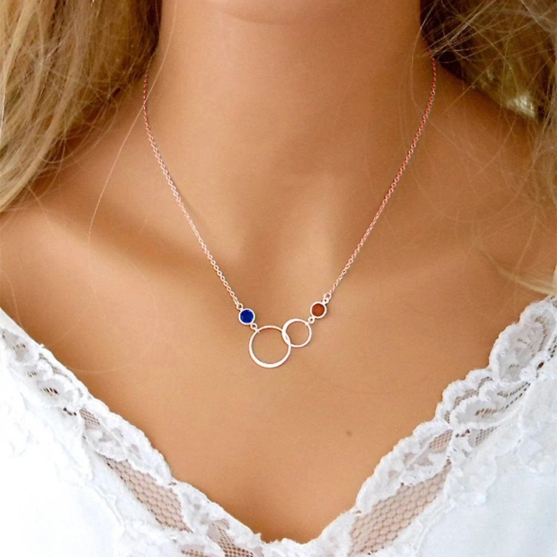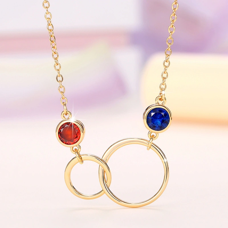 قلادة بتصميم عصري بسيط على شكل حلقة مزدوجة دائرية من النحاس مرصعة بالزركون للبيع بالجملة