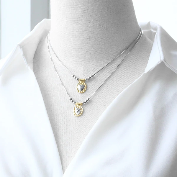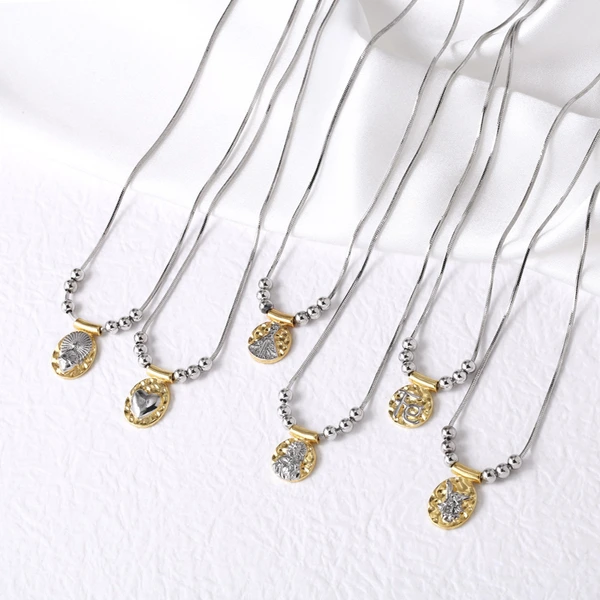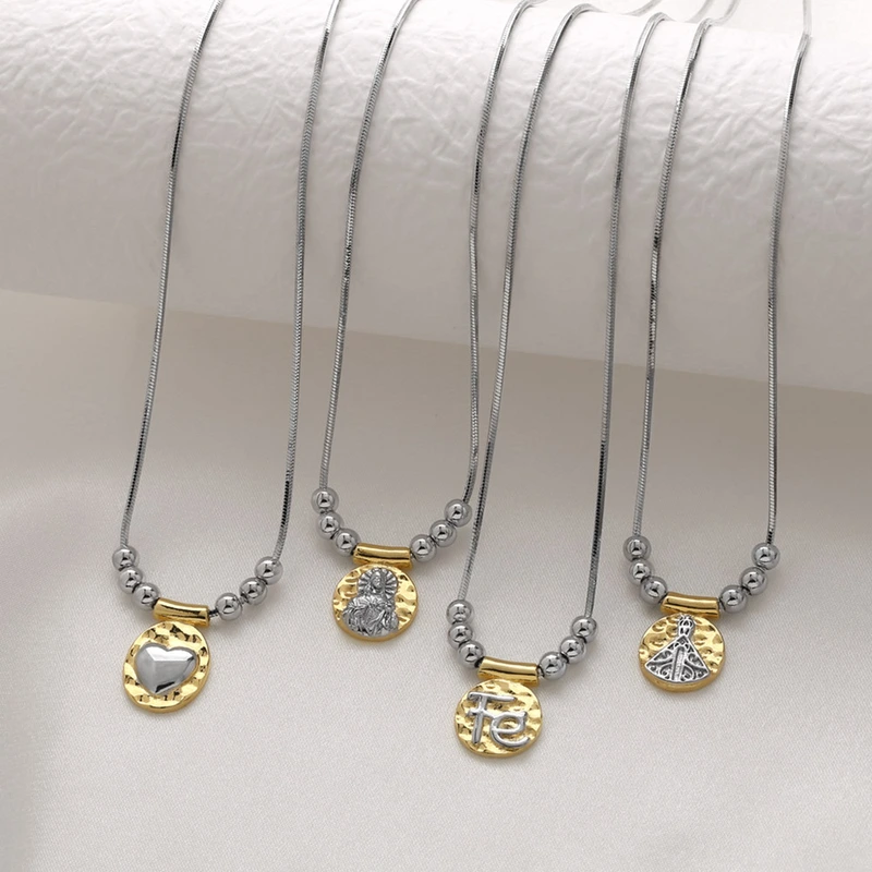 قلادة جديدة مطلية بالنحاس من الذهب عيار 18 قيراطًا بلونين لامعين على شكل حب مادونا، سلسلة الترقوة nkv20