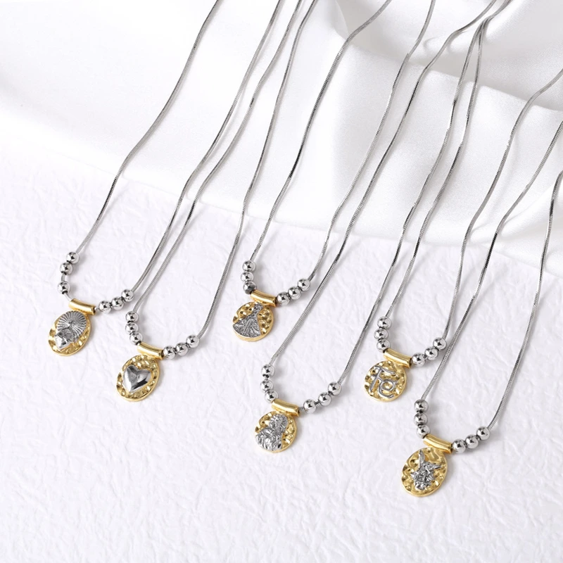 قلادة مريم العذراء مطلية بالذهب على شكل سلسلة ترقوة بتصميم عتيق من nkz35