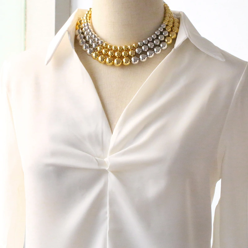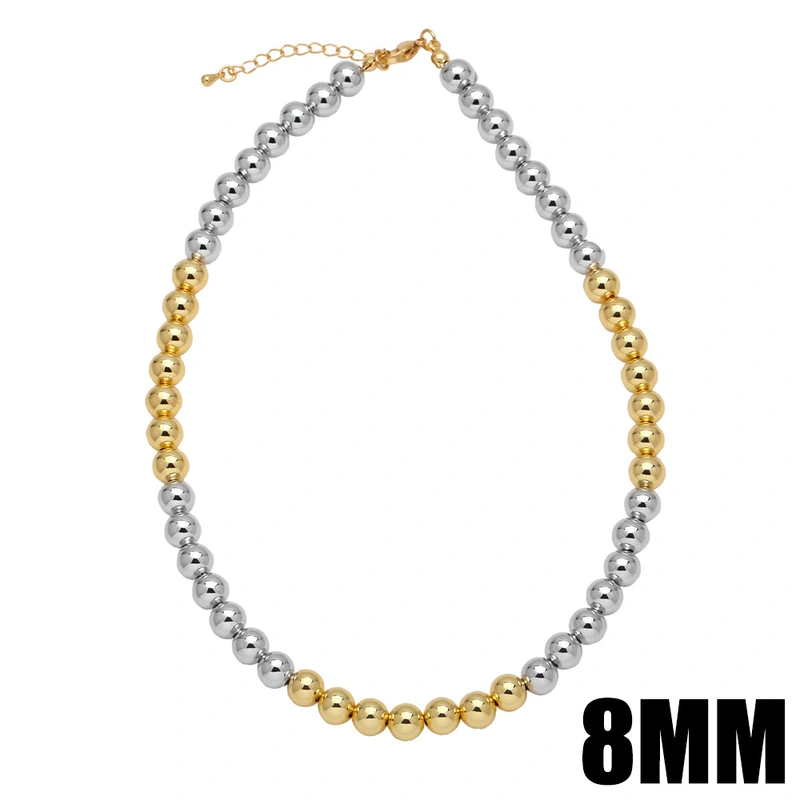 قلادة جديدة من الخرز المستدير بتصميم أوروبي وأمريكية عتيقة مطلية بالنحاس من الذهب عيار 18 قيراطًا، سلسلة ترقوة مرصعة بالخرز nkn73