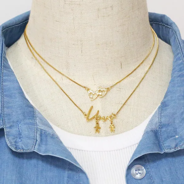 قلادة مجوهرات الحب الأكثر مبيعًا في أوروبا وأمريكا، قلادة أنيقة متشابكة على شكل قلب بطبقتين، قلادة أخت جيدة