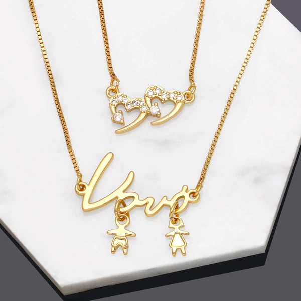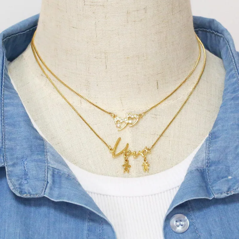 قلادة حب بسيطة بتصميم أوروبي وأمريكي على شكل ولد وبنت، سلسلة ترقوة متناسقة، NKB343