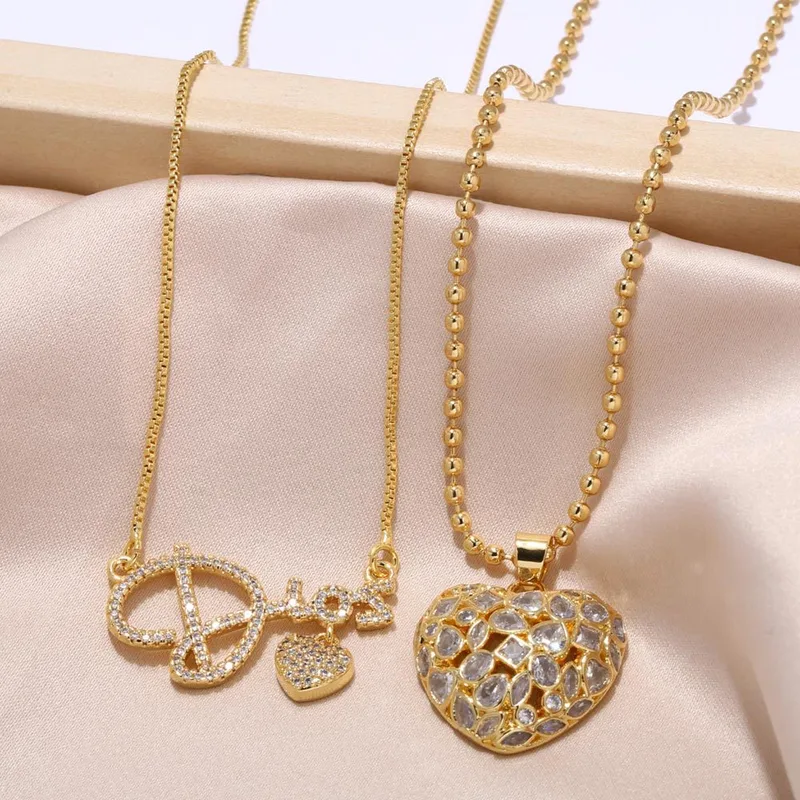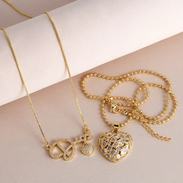 قلادة حب بسيطة وعصرية للنساء، شخصية ومبتكرة، مرصعة بالزركون وقلادة الترقوة المطلية بالذهب nkb857