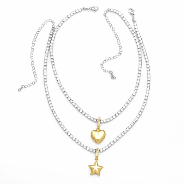 قلادة مجوهرات الحب الأكثر مبيعًا في أوروبا وأمريكا، قلادة أنيقة متشابكة على شكل قلب بطبقتين، قلادة أخت جيدة