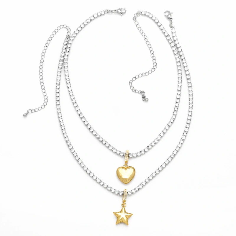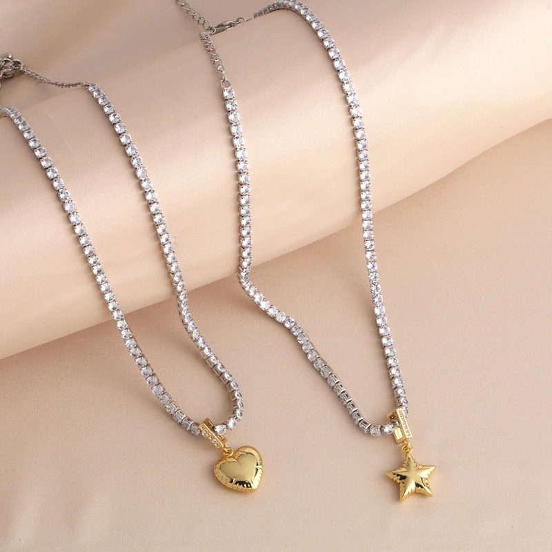 قلادة حب على شكل نجمة مطلية بالذهب ومرصعة بالزركون بتصميم أنيق أوروبي وأمريكية، سلسلة ترقوة nkq91