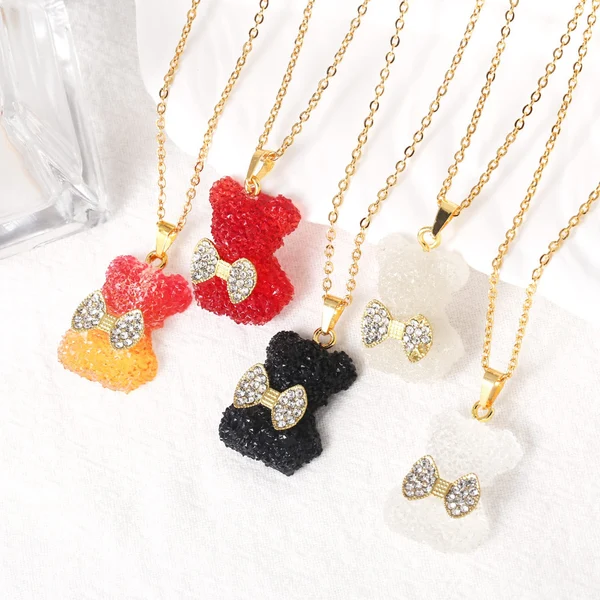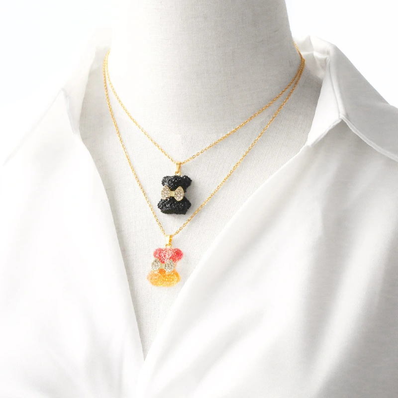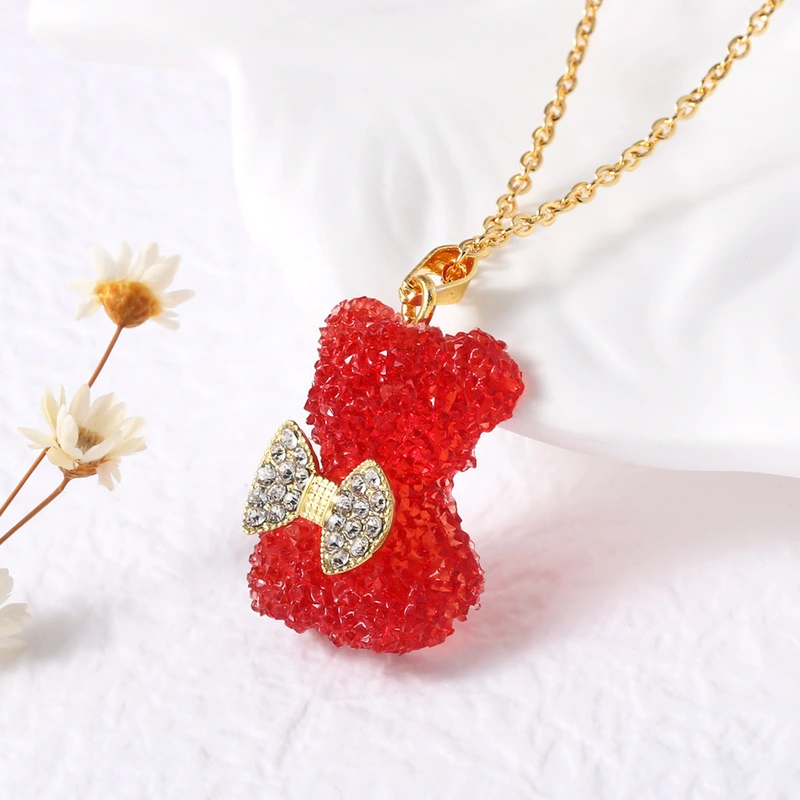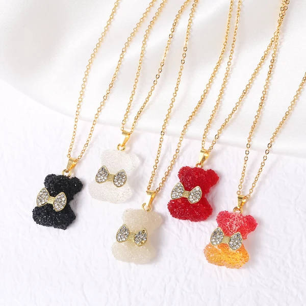 قلادة دب ملونة جديدة ومميزة للبيع بالجملة مطلية بالذهب على شكل سلسلة الترقوة nkz09