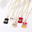 قلادة على شكل زهرة البرسيم ذات أربع أوراق مرصعة بالزركون، قلادة كورية أنيقة عالية الجودة للنساء