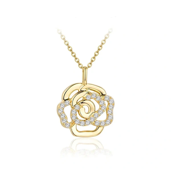 قلادة ريترو أوروبية وأمريكية أنيقة على شكل وردة كاميليا مجوفة مجوهرات نقود رائجة البيع