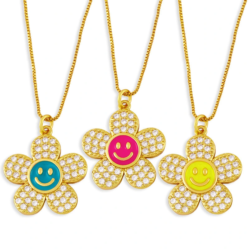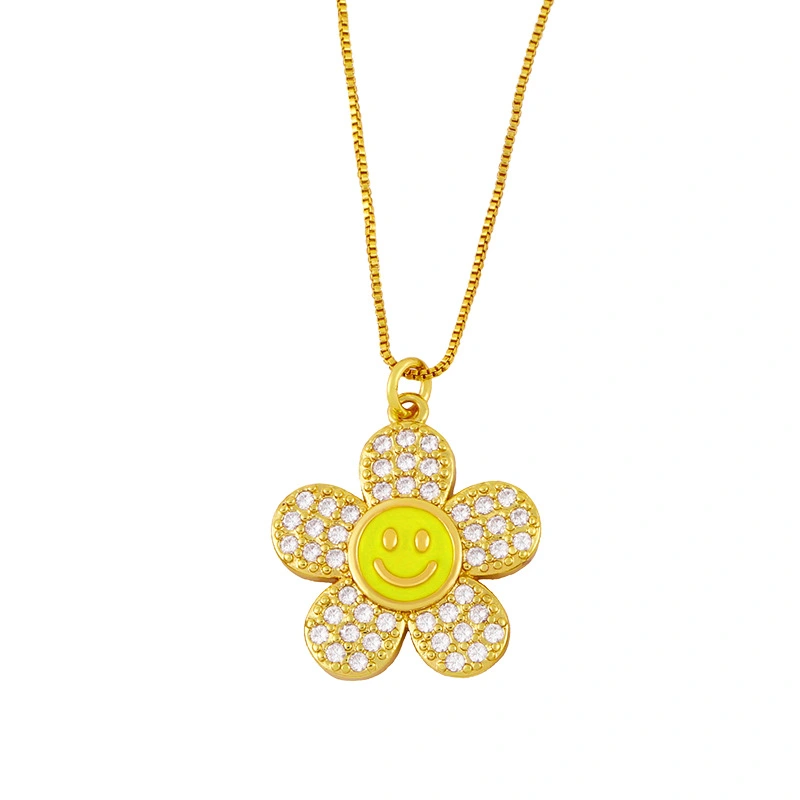 قلادة زهرة مبتسمة صيفية أنيقة بتصميم أنيق للنساء من الهيب هوب، سلسلة ترقوة nkv96