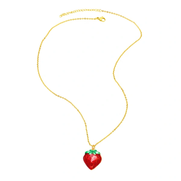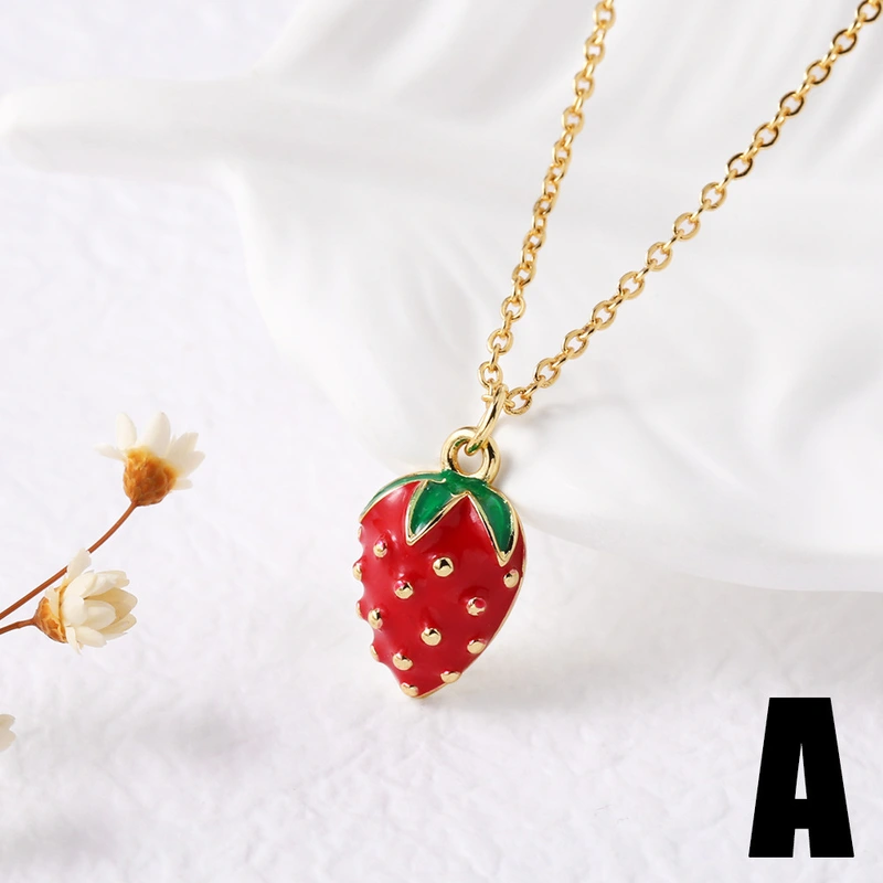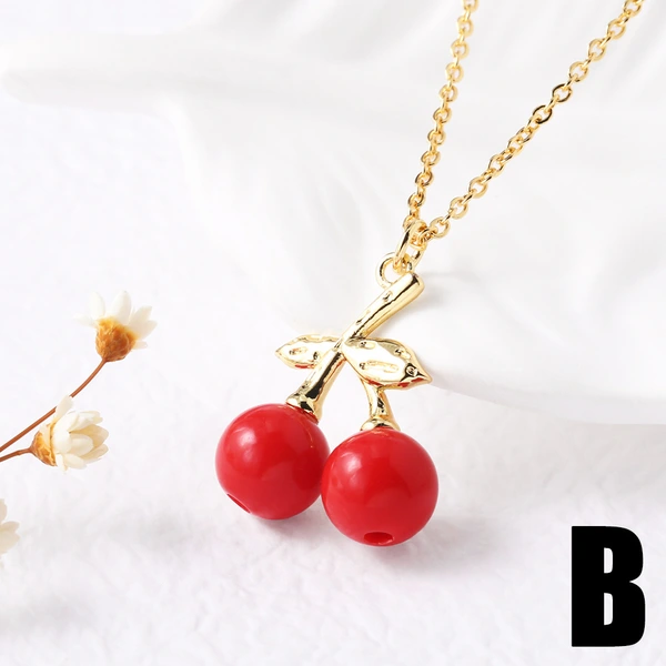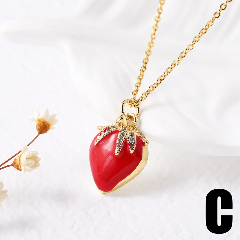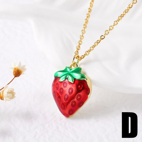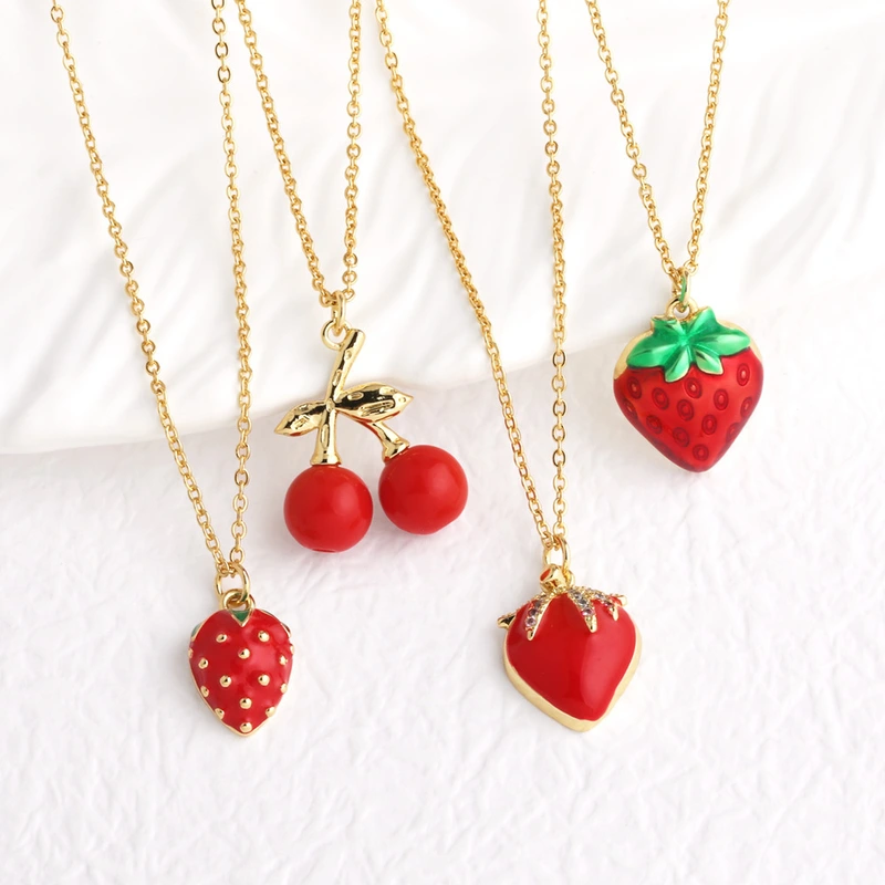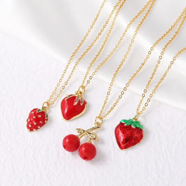 قلادة زيت الفراولة والكرز والفواكه الشعبية والمجوهرات مع سلسلة الترقوة المطلية بالذهب nkb282