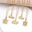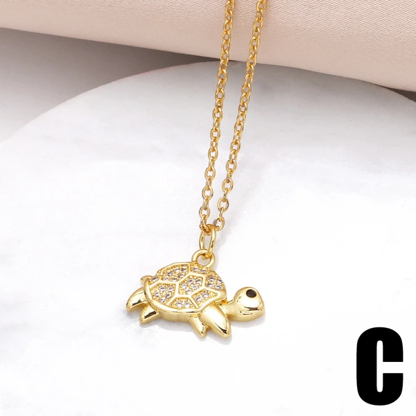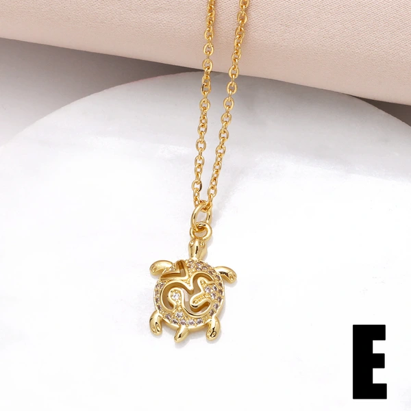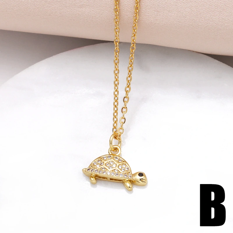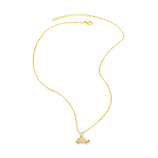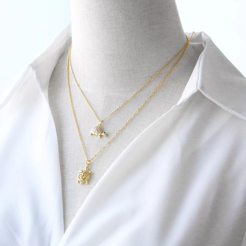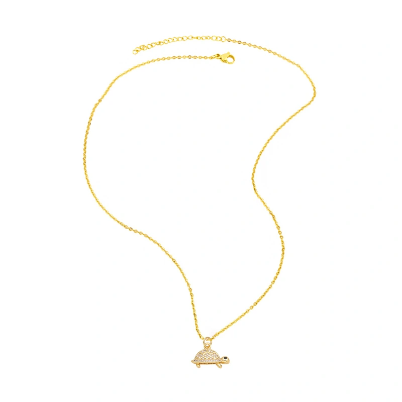 قلادة سلحفاة مطلية بالنحاس من الذهب عيار 18 قيراطًا مرصعة بالزركون بالكامل، سلسلة الترقوة nkn33