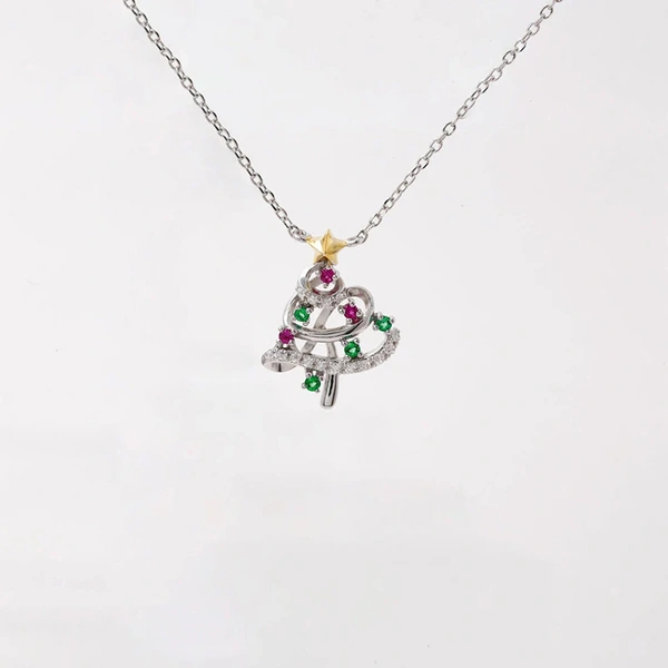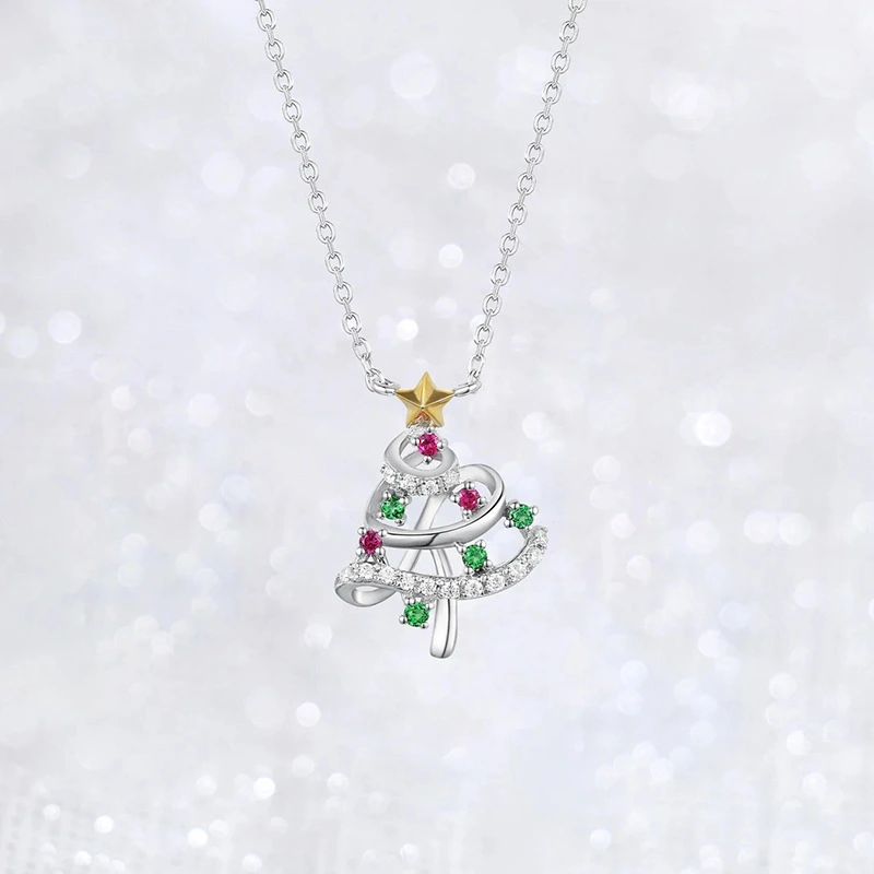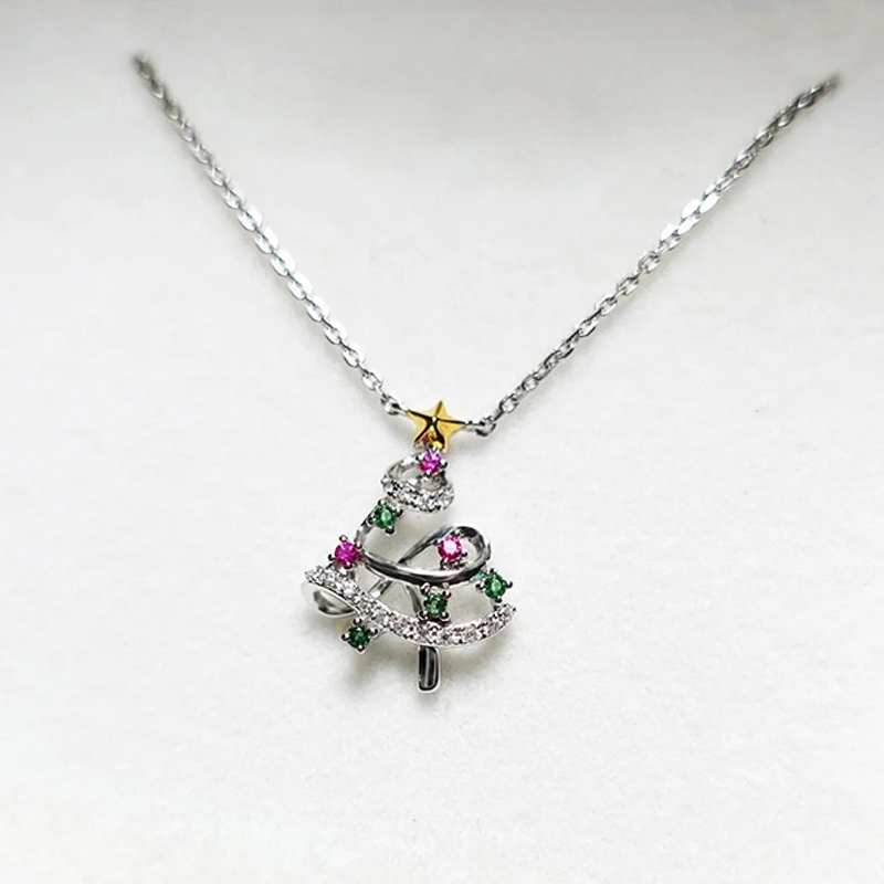 قلادة شجرة عيد الميلاد الصغيرة والرائعة الأوروبية والأمريكية الجديدة الملونة الحلوة هدية العطلة قلادة لامعة المجوهرات