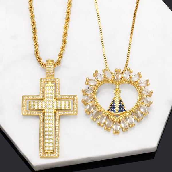 قلادة صليب ألماس أوروبية وأمريكية عتيقة ذات سلسلة ملتوية بتصميم هيب هوب وسلسلة ترقوة NKB345