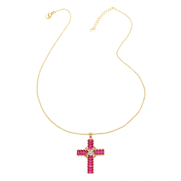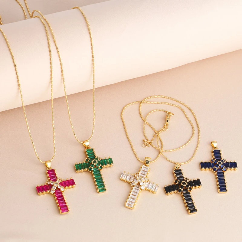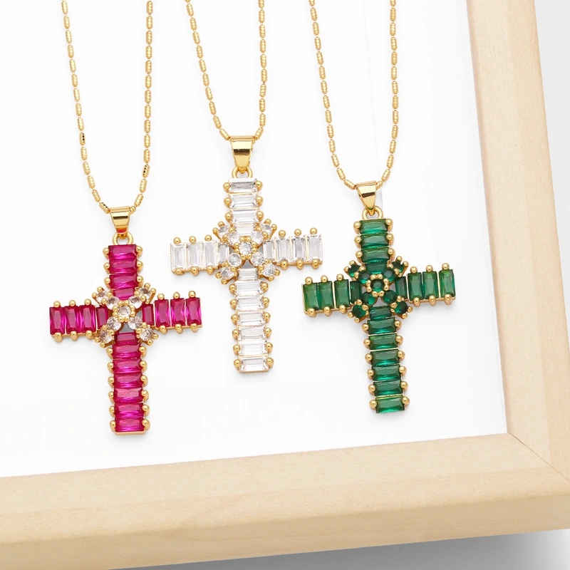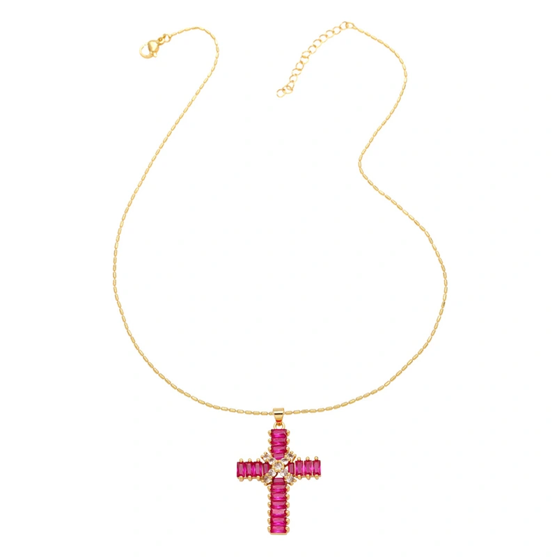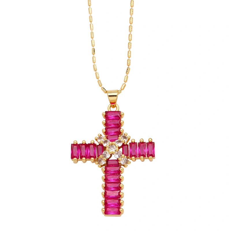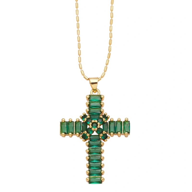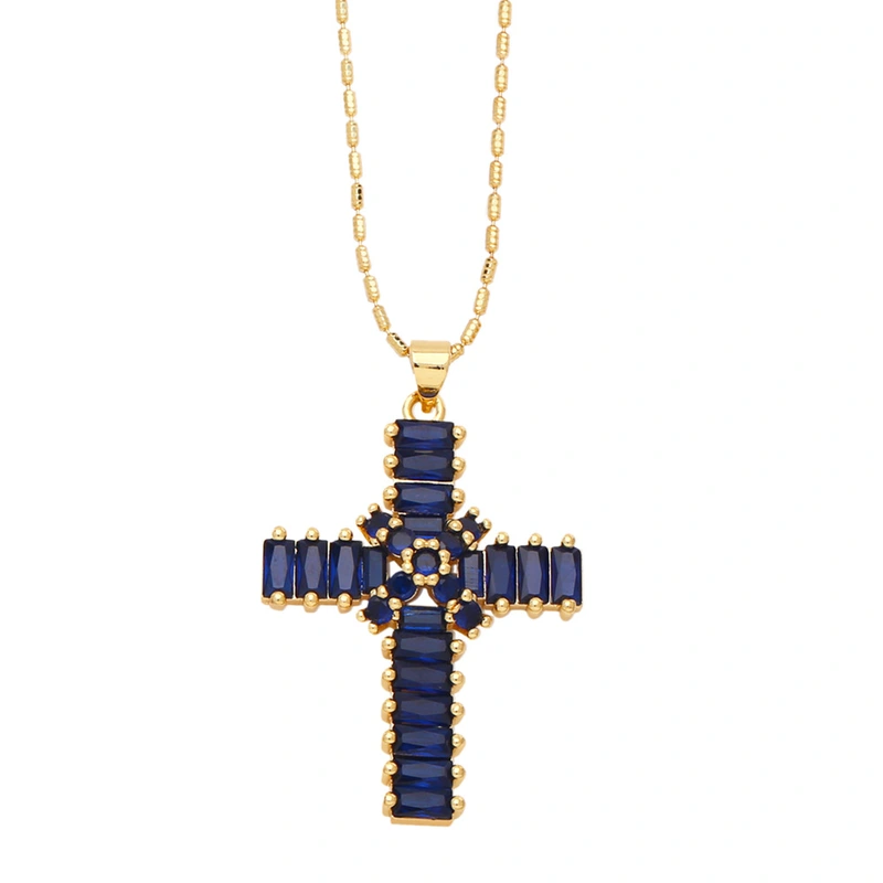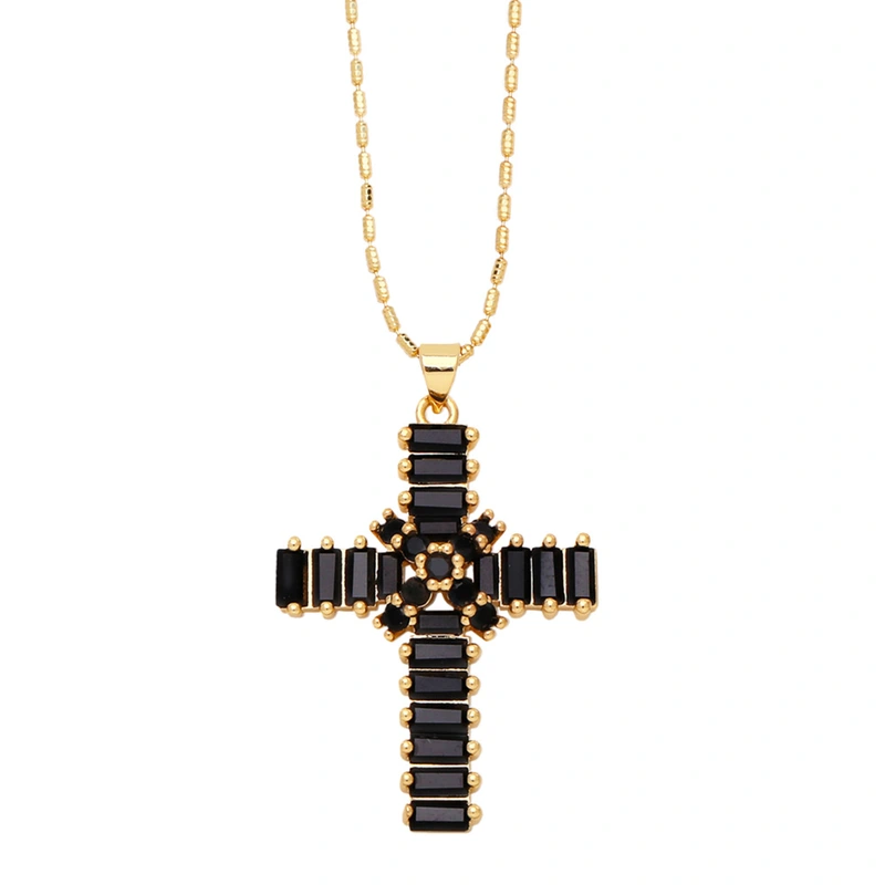 قلادة صليب عالية الجودة بتصميم عتيق مرصعة بالزركون سلسلة الترقوة nkb849