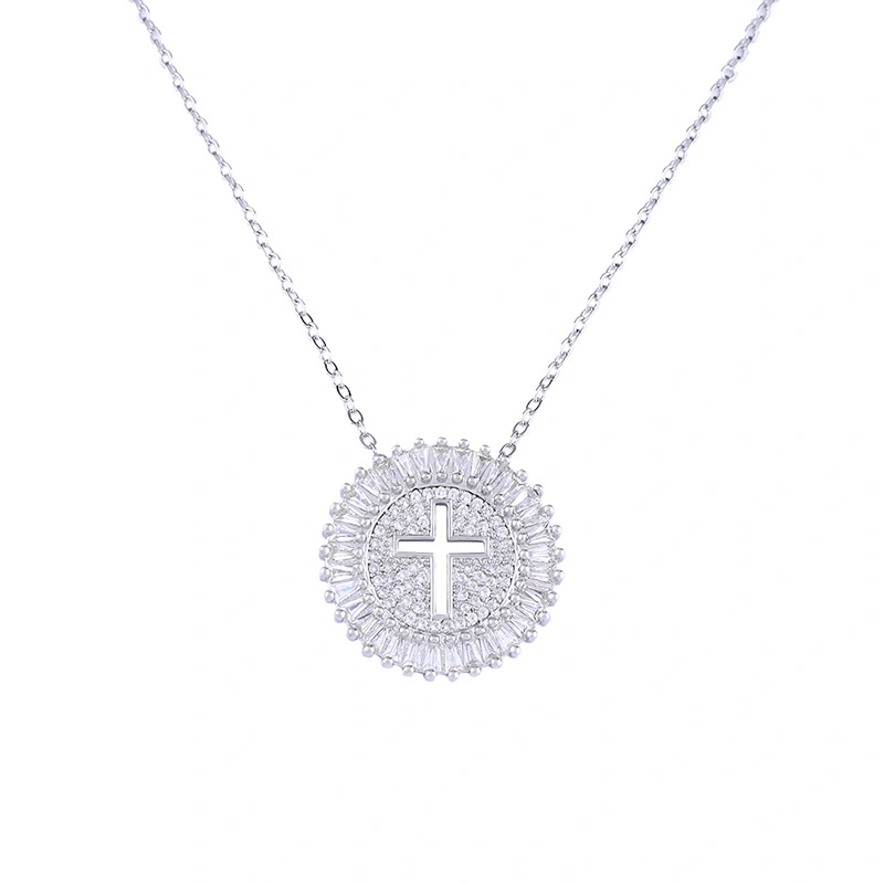 قلادة صليب مجوف مرصعة بالألماس بالكامل من إكسسوارات جديدة، قلادة مطلية بالنحاس ومرصعة بالزركون اللامع الرائع nkp11