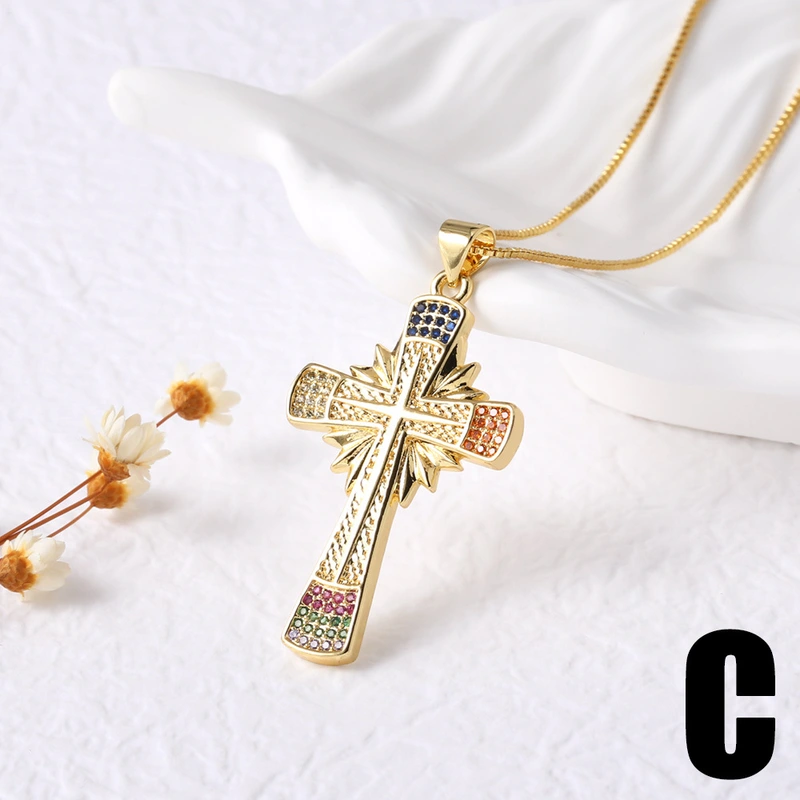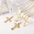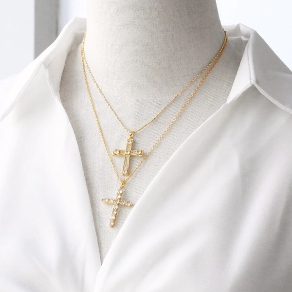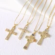 قلادة صليب مطلية بالذهب أوروبية وأمريكية، سلسلة ترقوة مرصعة بالزركون بالكامل، nkw51