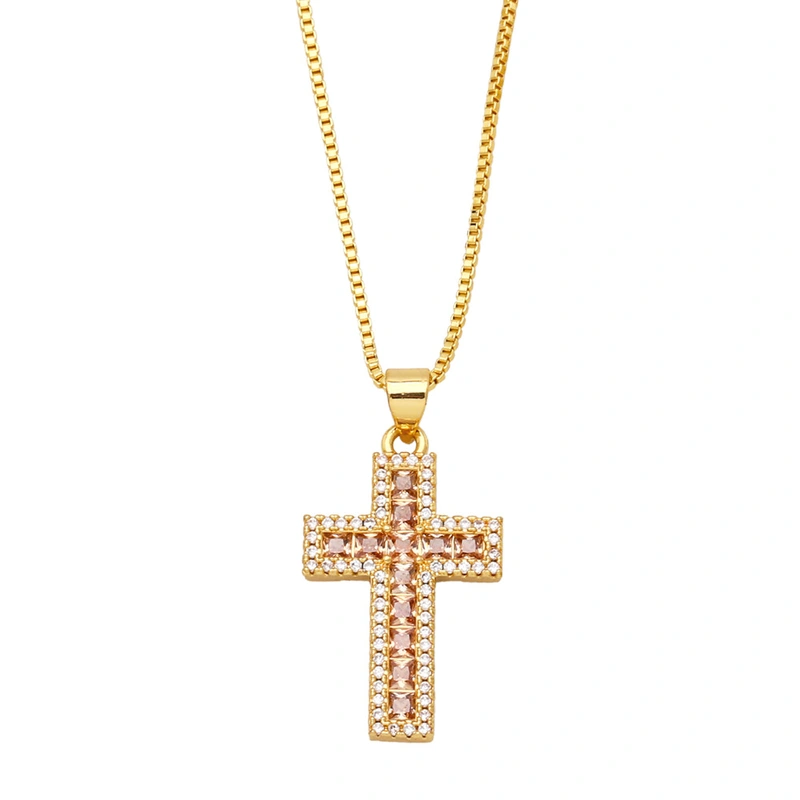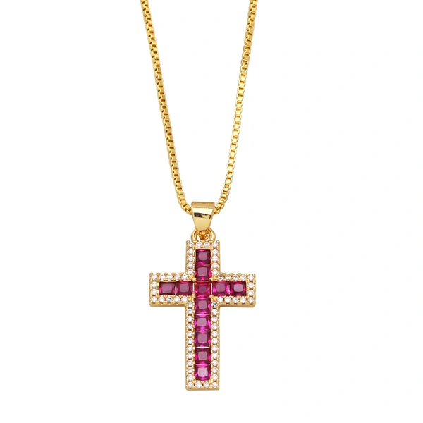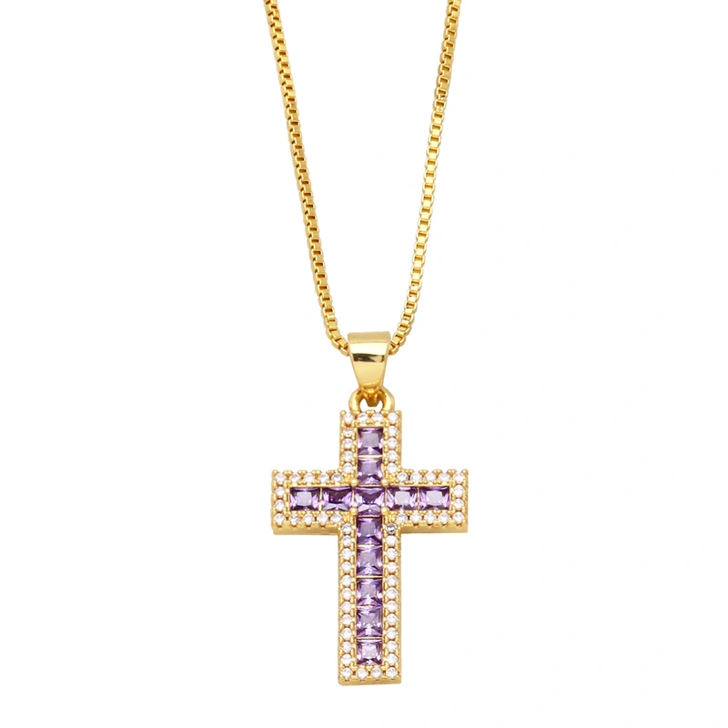 قلادة صليب من الألماس بتصميم بسيط وأنيق للنساء، سلسلة متقاطعة من سلسلة الترقوة nkb444