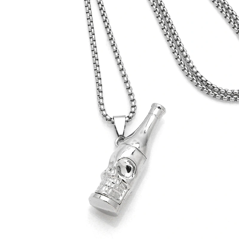 قلادة على شكل زجاجة بيرة على شكل جمجمة بتصميم أوروبي وأمريكي للرجال، سلسلة طويلة من البلوزات العصرية من موسيقى الديسكو والهيب هوب nkt90