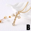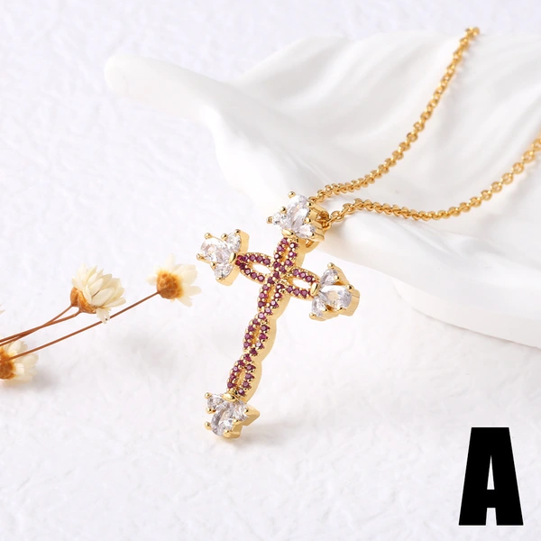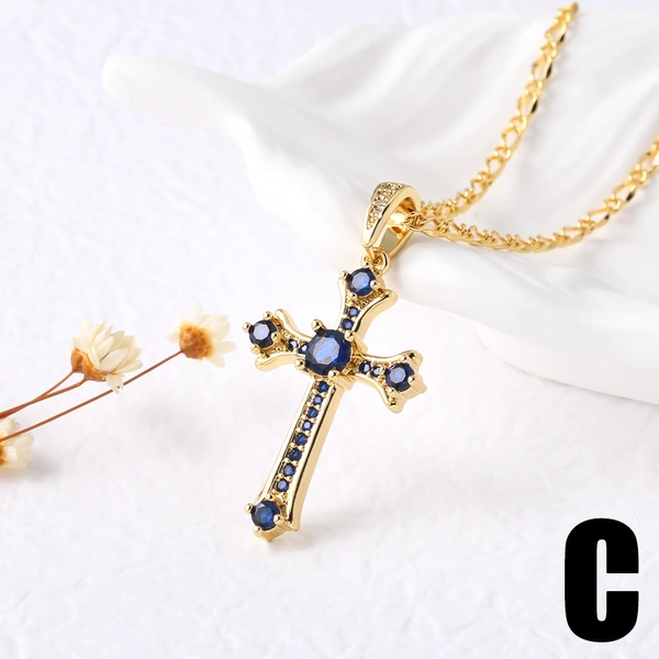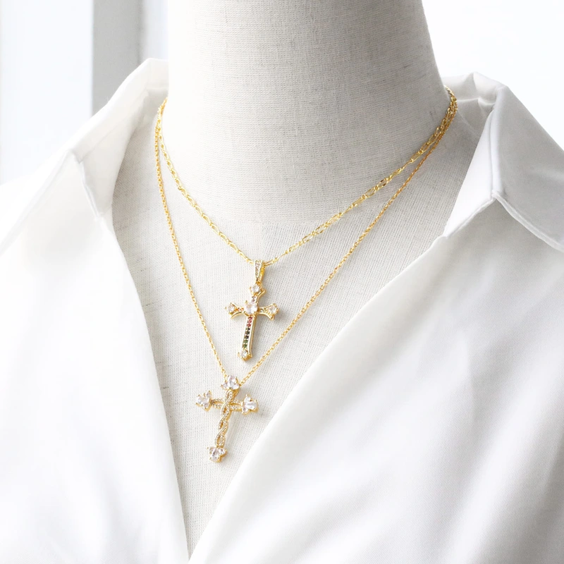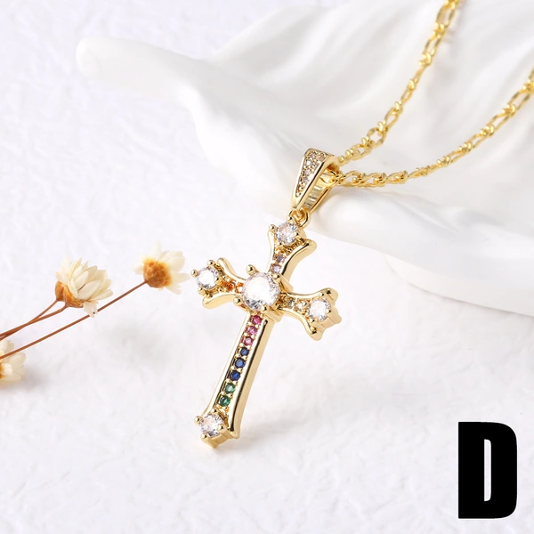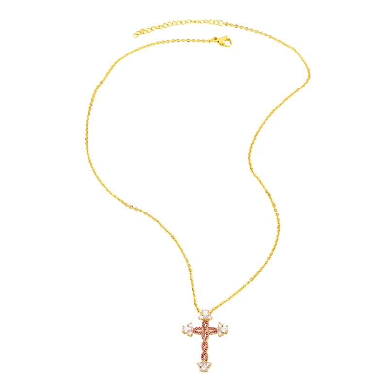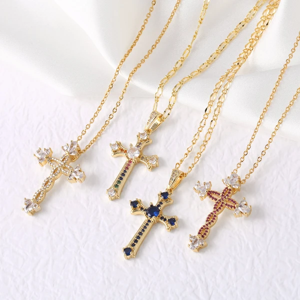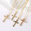 قلادة على شكل صليب أوروبية وأمريكية عتيقة مطلية بالنحاس من الذهب عيار 18 قيراطًا مرصعة بالزركون وسلسلة الترقوة nkt66