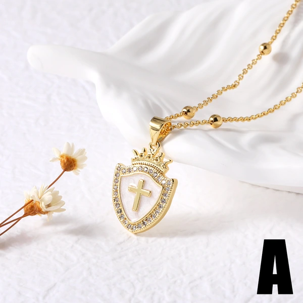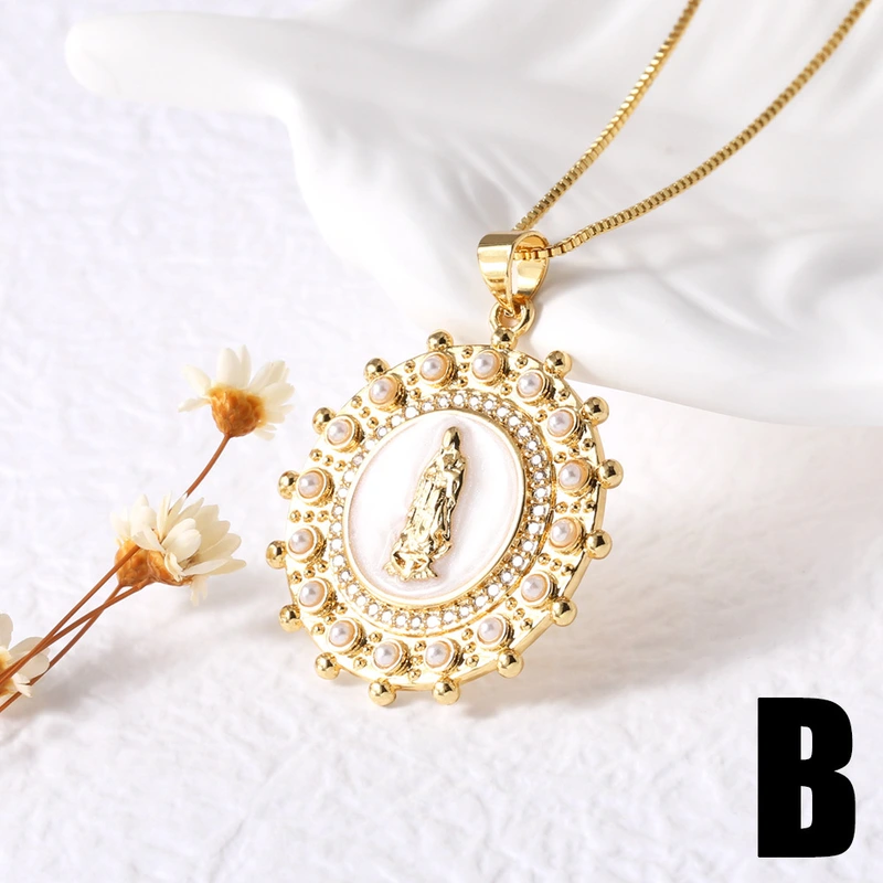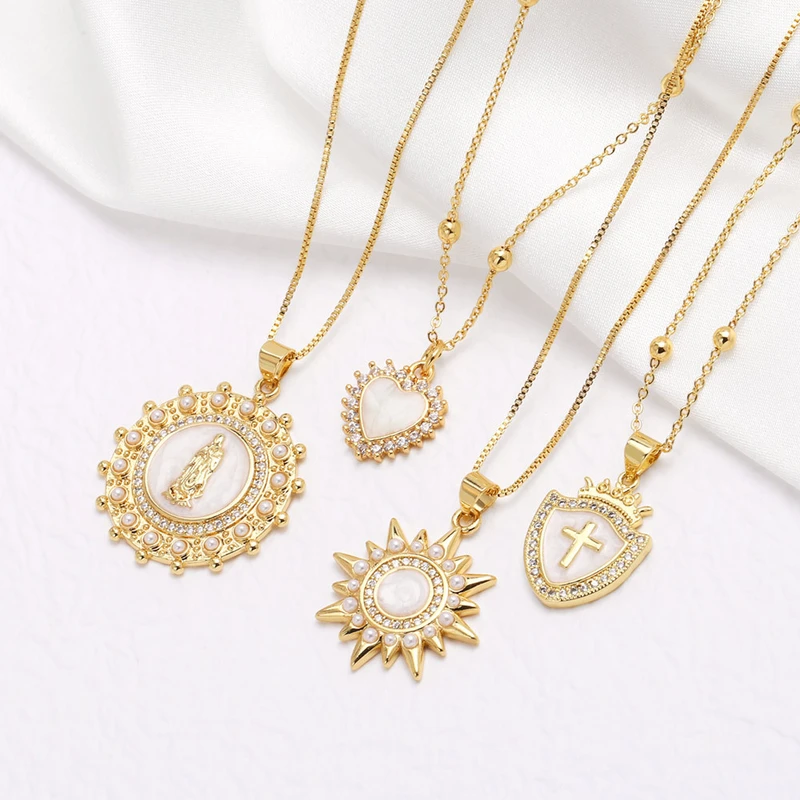 قلادة على شكل صليب مطلي بالذهب الحقيقي على شكل سيدة الحب، سلسلة الترقوة nka060