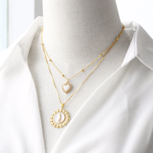 قلادة مجوهرات الحب الأكثر مبيعًا في أوروبا وأمريكا، قلادة أنيقة متشابكة على شكل قلب بطبقتين، قلادة أخت جيدة