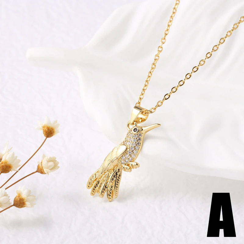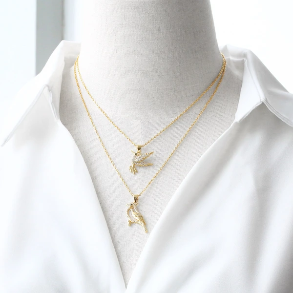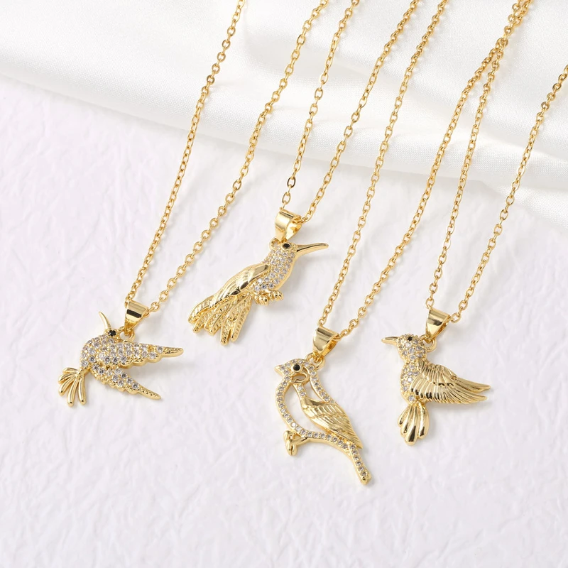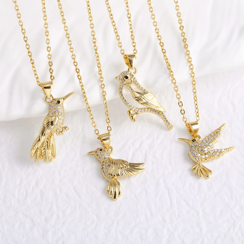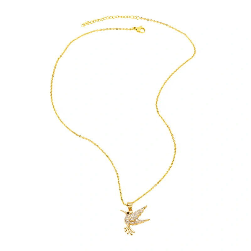قلادة على شكل طائر مطلي بالذهب جديدة رائجة البيع من الزركون الكامل وسلسلة الترقوة للنساء nkb692
