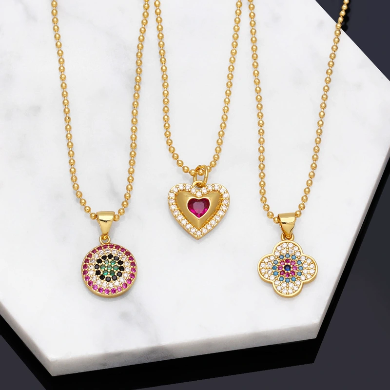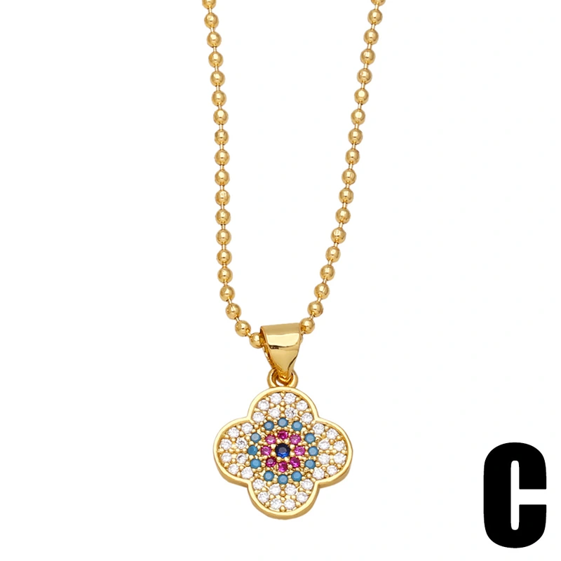 قلادة على شكل عين الشيطان على شكل نبات البرسيم بأربع أوراق، أوروبية وأمريكية مرصعة بالألماس الملون، مرصعة بالزركون الهندسي، سلسلة الترقوة nkb286