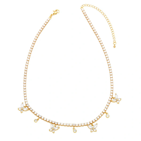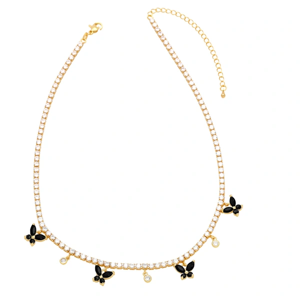 قلادة على شكل فراشة مرصعة بالألماس بالكامل بتصميم هيب هوب أوروبي وأمريكية، قلادة نسائية فاخرة من الزركون بتصميم رفيع nkb026
