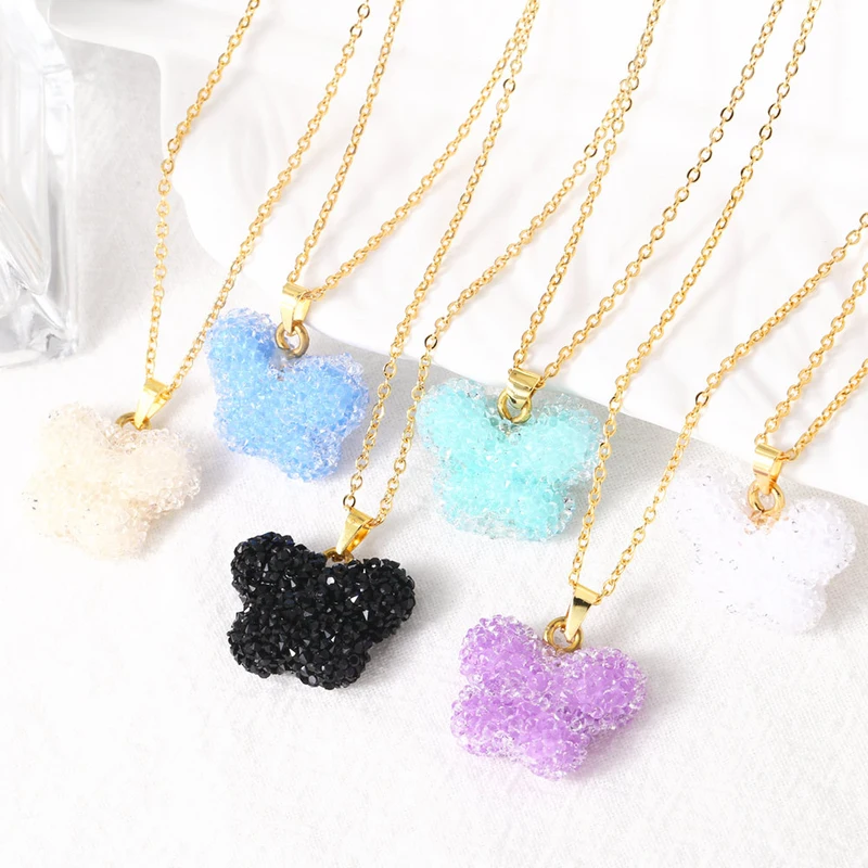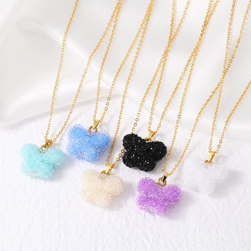 قلادة على شكل فراشة ملونة رائجة البيع كقطعة مجوهرات بسيطة وعصرية مطلية بالذهب سلسلة الترقوة nkb582