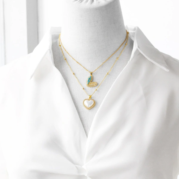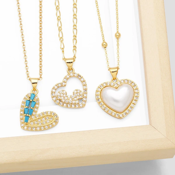 قلادة على شكل قلب من اللؤلؤ الأوروبي والأمريكي، قلادة نسائية متعددة الاستخدامات مرصعة بالزركون مطلية بالذهب على شكل قلب الخوخ، قلادة على شكل الترقوة، مجوهرات nkb819
