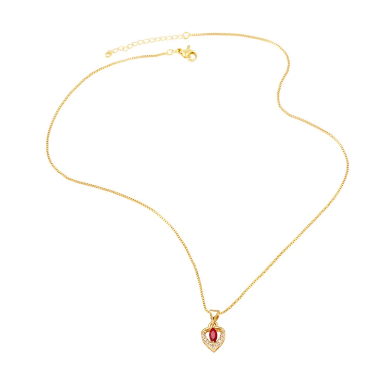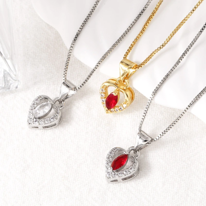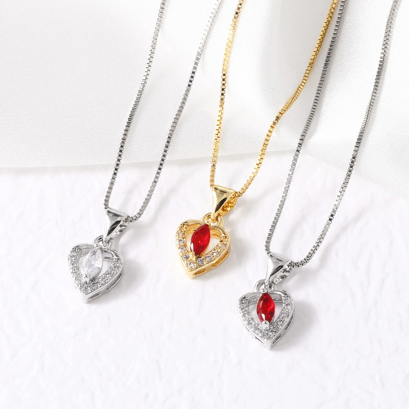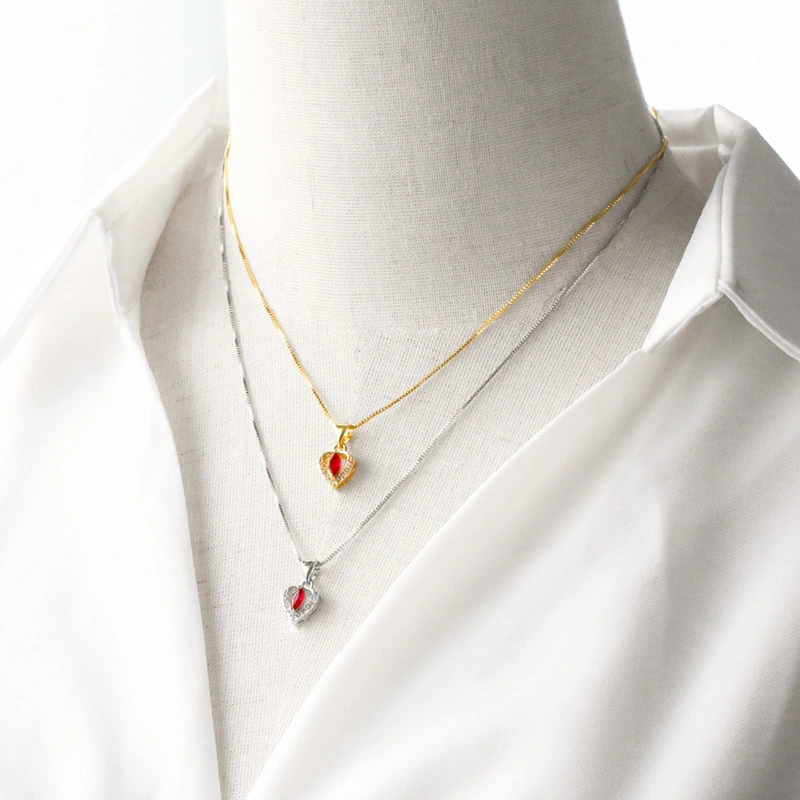قلادة على شكل قلب من الياقوت الأحمر الأكثر مبيعًا كهدية للنساء مطلية بالذهب سلسلة الترقوة nkb184