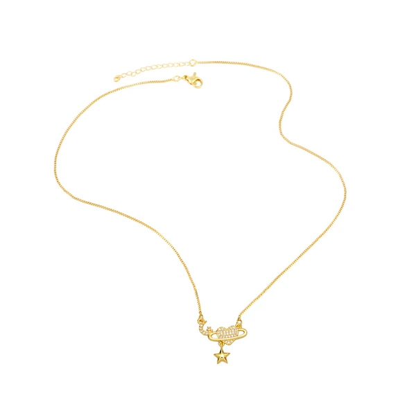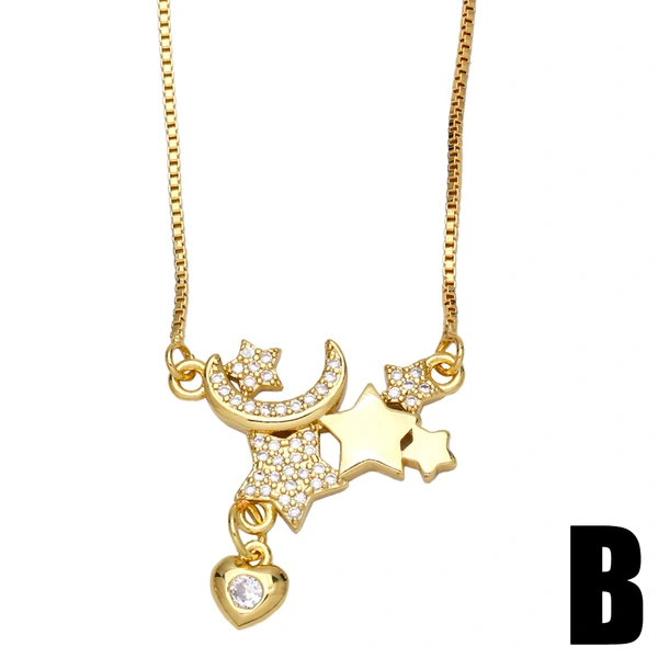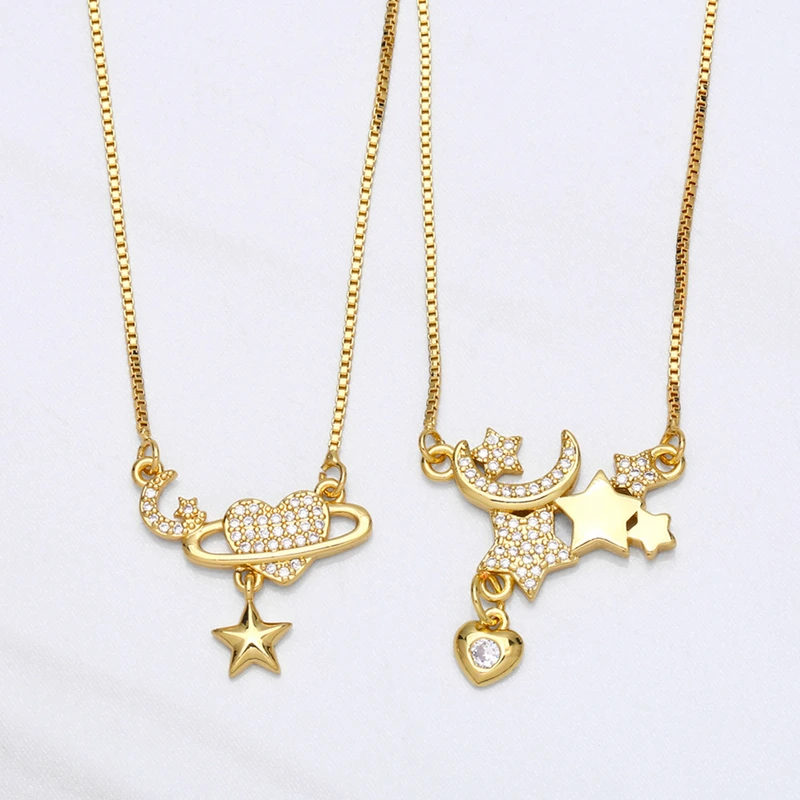 قلادة على شكل نجمة وقمر بتصميم أوروبي وأمريكي مرصعة بالألماس على شكل قلب وقلادة فاخرة بسيطة وخفيفة للنساء nka049