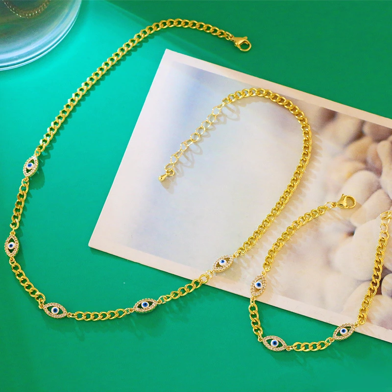 قلادة كوبية بخياطة عين وسلسلة ترقوة أنثوية بسيطة على طراز الهيب هوب وسلسلة سترة أنثوية nkv80