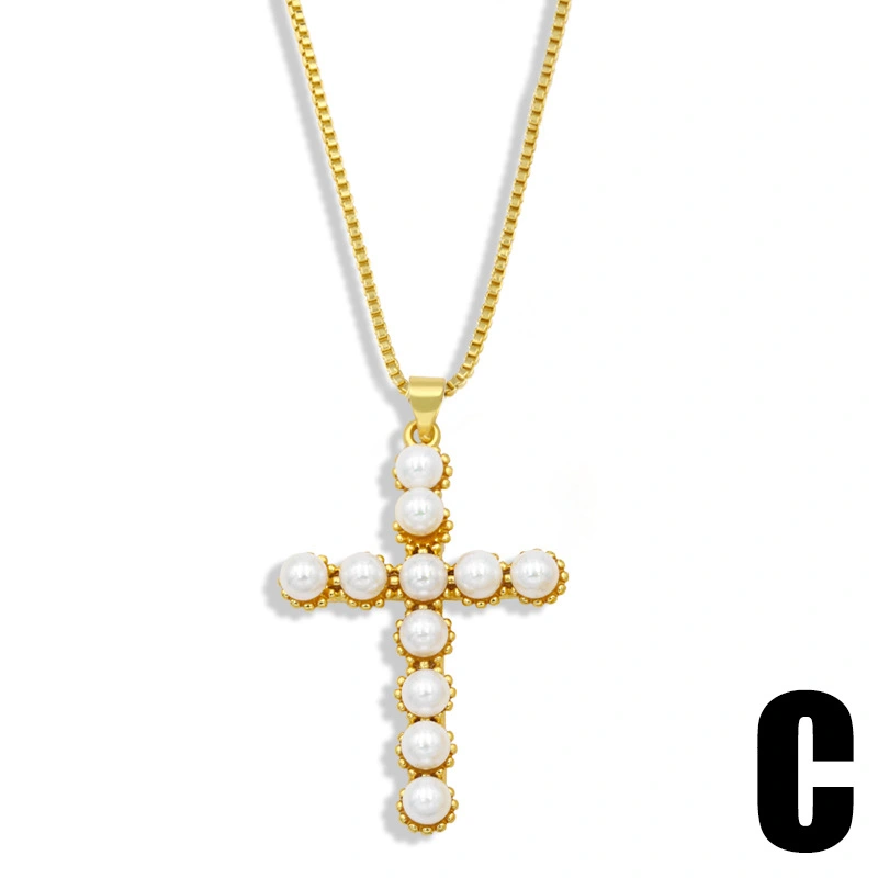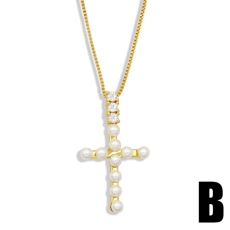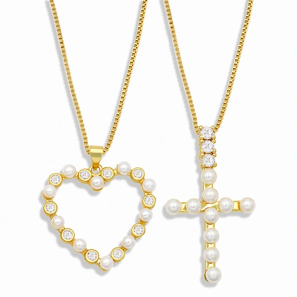 قلادة متقاطعة من مزيج الشخصية الأوروبية والأمريكية للنساء بتصميم كلاسيكي بسيط من الألماس واللؤلؤ على شكل قلب nkt36