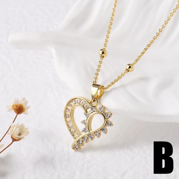 قلادة على شكل قلب من اللؤلؤ جديدة ومُباعة بشكل ساخن من الذهب الحقيقي مطلية بالنحاس وسلسلة الترقوة من الزركون بالكامل nkb334