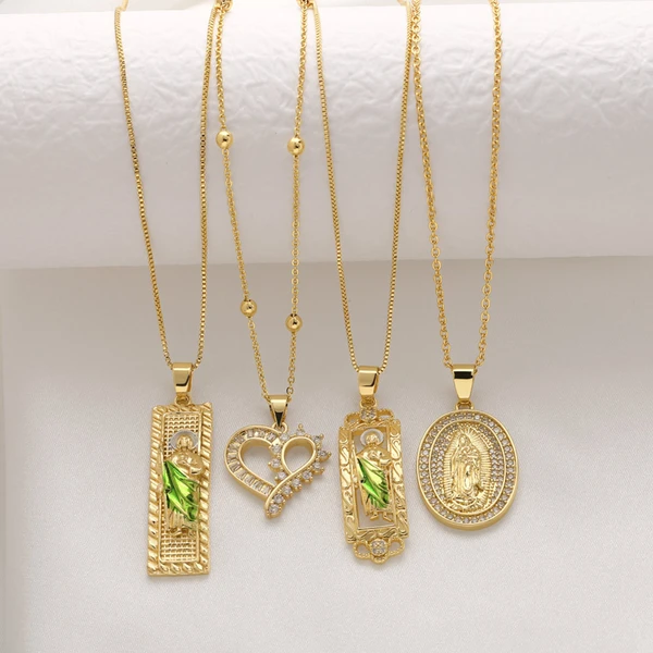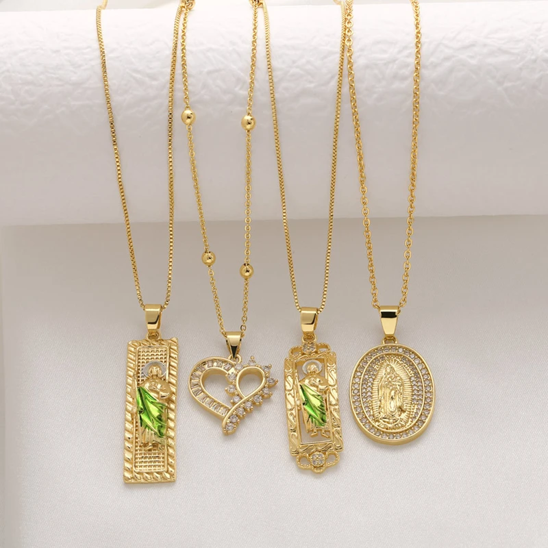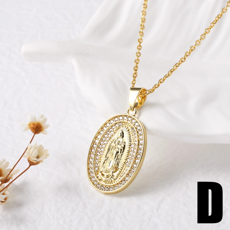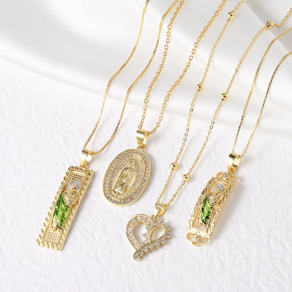 قلادة جديدة من الزركون الكامل لمريم العذراء، سلسلة الترقوة النسائية المطلية بالنحاس والذهب الحقيقي nkz59