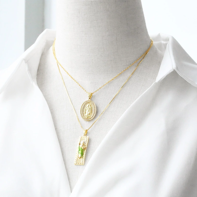 قلادة مريم العذراء مطلية بالذهب على شكل سلسلة ترقوة بتصميم عتيق من nkz35
