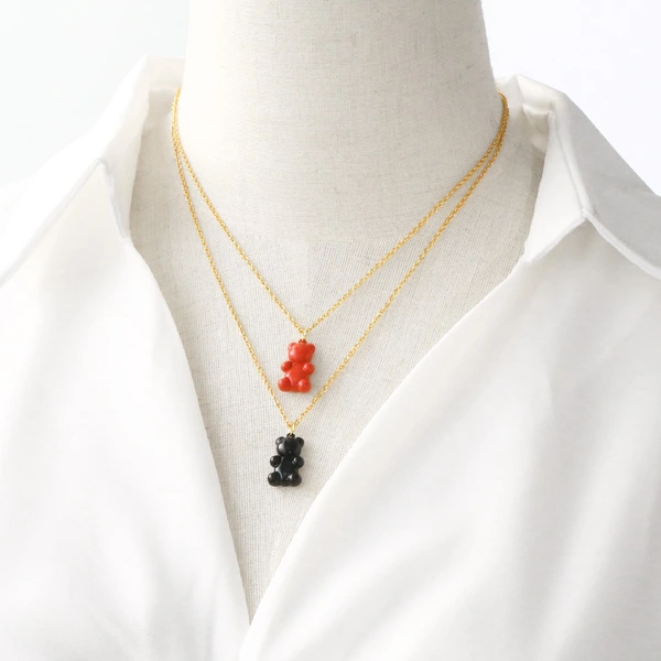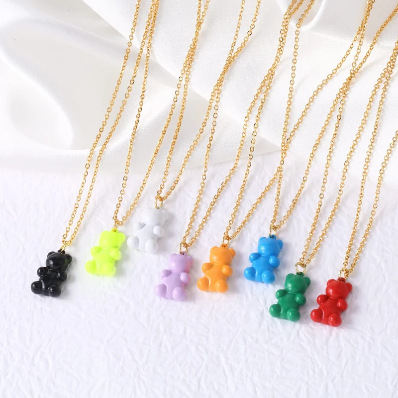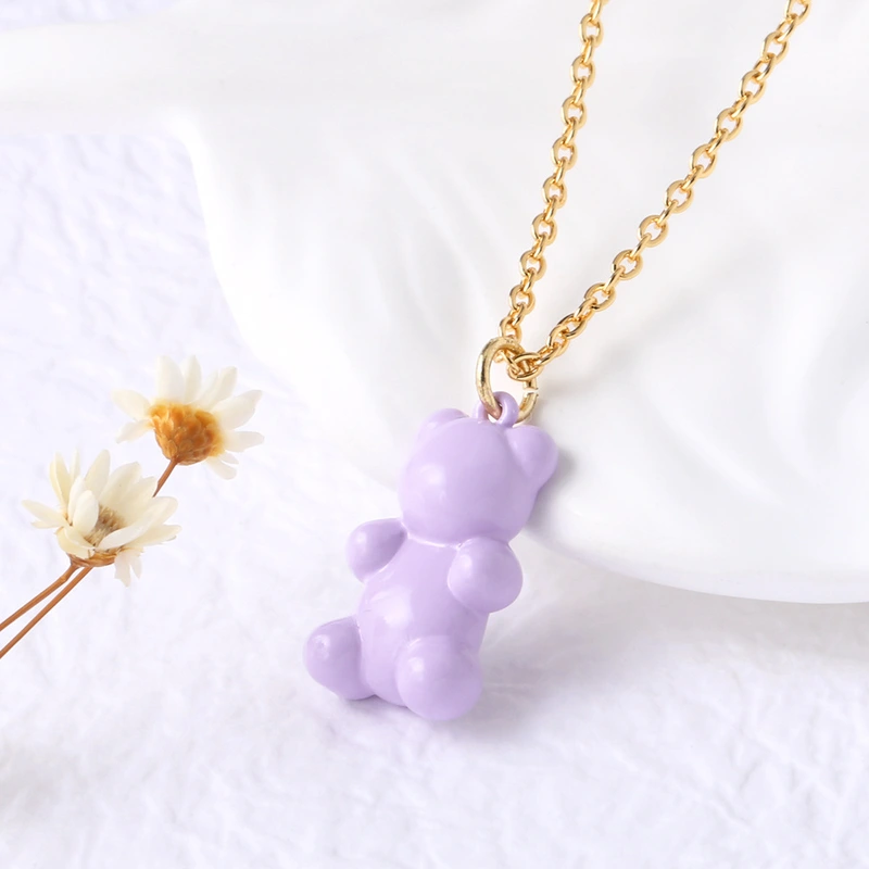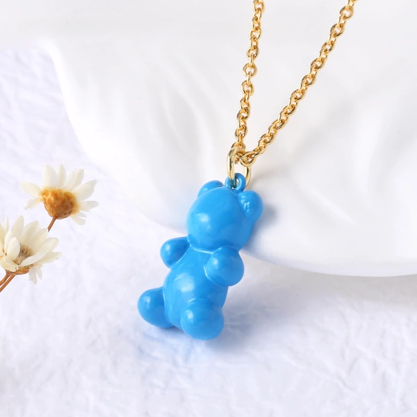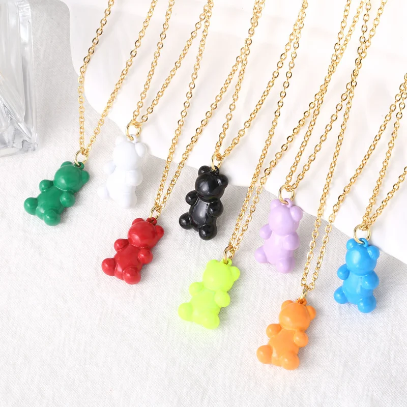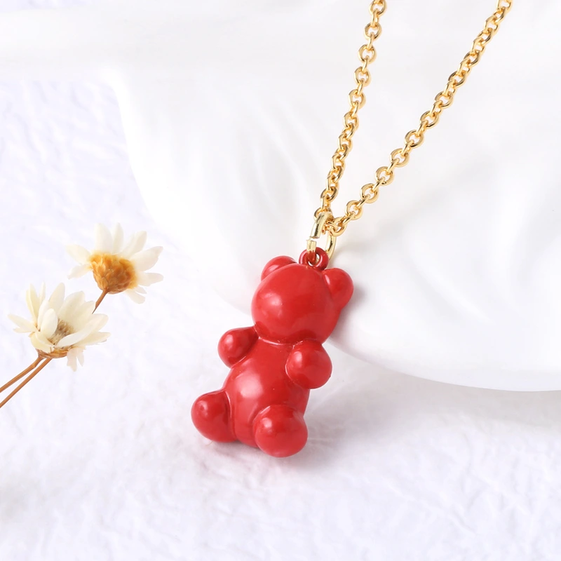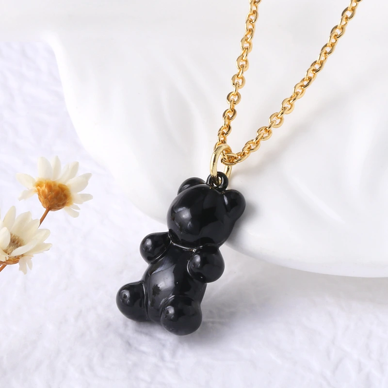 قلادة مطلية بالذهب على شكل دب زيتي ملون أوروبي وأمريكية، سلسلة الترقوة nkb453