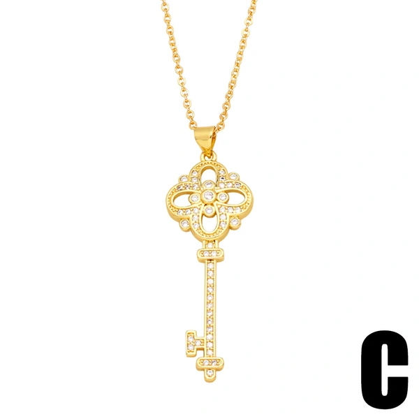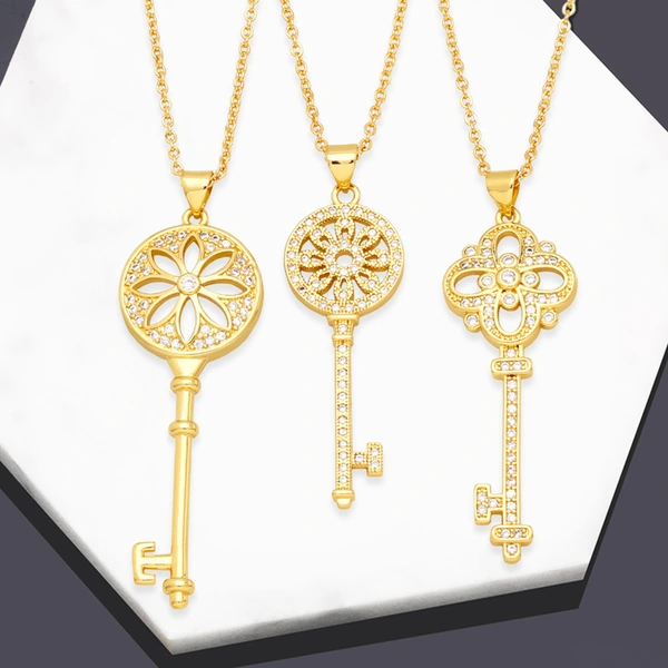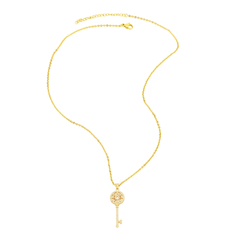 قلادة مفاتيح على شكل زهرة تصفية سلسلة سترة نسائية أوروبية وأمريكية إكسسوارات ماسية بسيطة قلادة فاخرة خفيفة NKB570
