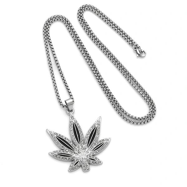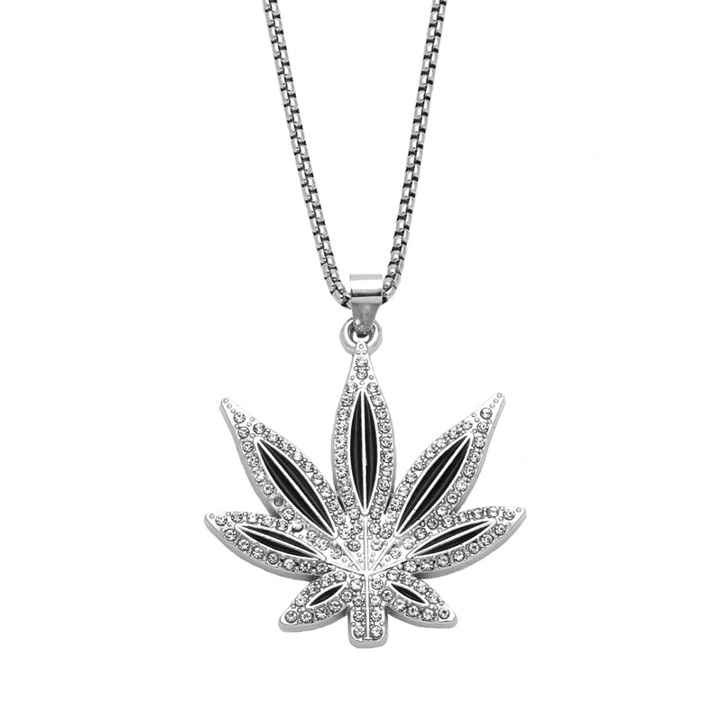 قلادة من الذهب الوردي على شكل ورقة القيقب من الألماس للرجال والنساء بتصميم عصري وسلسلة كنزة طويلة من nkt35