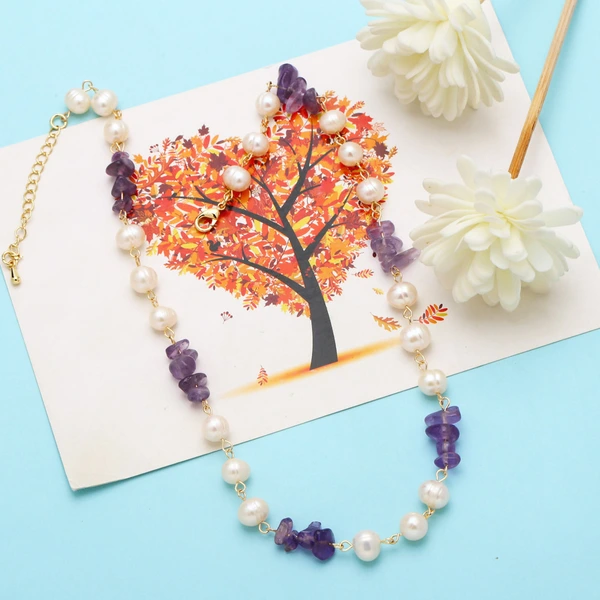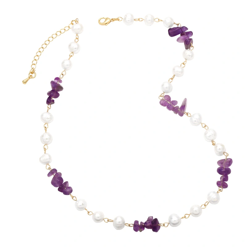 قلادة نسائية أنيقة أوروبية وأمريكية من اللؤلؤ والحصى غير المنتظمة سلسلة الترقوة خفيفة فاخرة على الطراز البارد بتصميم عتيق nkb515