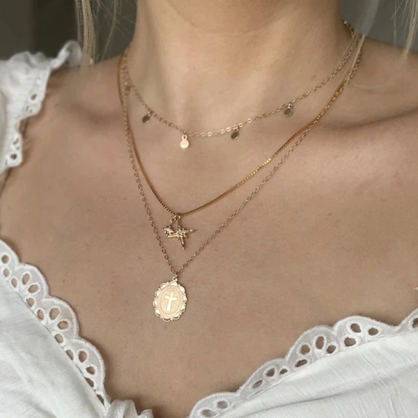 قلادة نسائية أنيقة بتصميم كوري أنيق على شكل زهرة ذهبية متعددة الطبقات، قلادة على شكل ترقوة تناسب جميع الأذواق