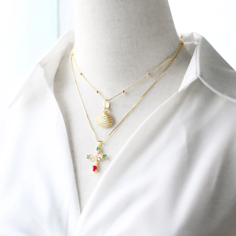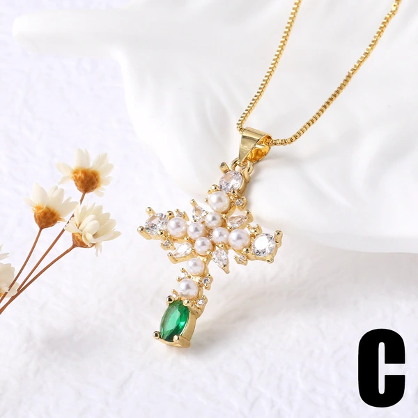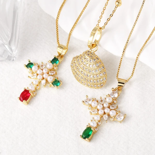 قلادة نسائية مطلية بالذهب على شكل صليب من الزركونيوم بالكامل للبيع بالجملة كقطعة مجوهرات nkq75